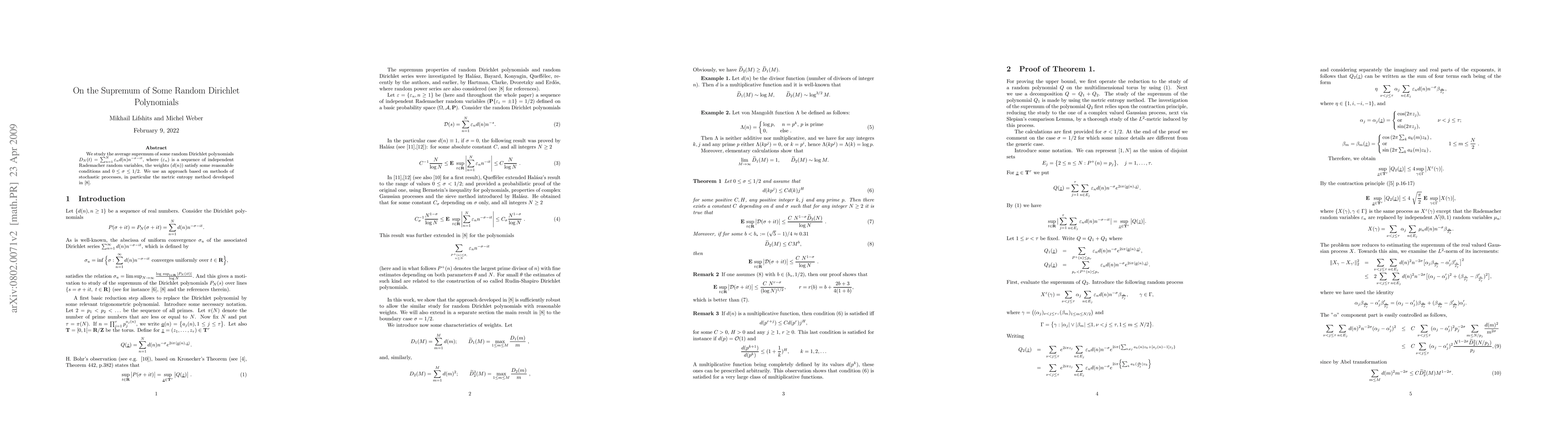 This paper investigates the supremum of random Dirichlet polynomials with independent coefficients, providing sharp upper and lower bounds for the supremum expectation. The study extends previous results using methods from stochastic processes, specifically the metric entropy method.