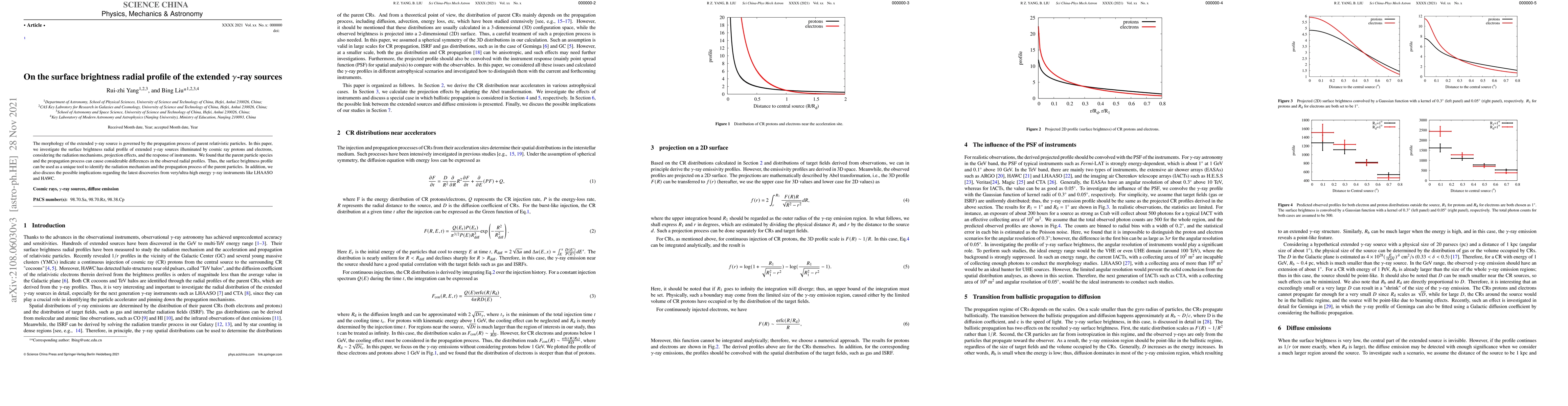 Researchers studied the surface brightness radial profiles of extended gamma-ray sources to identify radiation mechanisms and propagation processes. They found that parent particle species and processes can significantly impact observed profiles, offering a unique tool for identification.