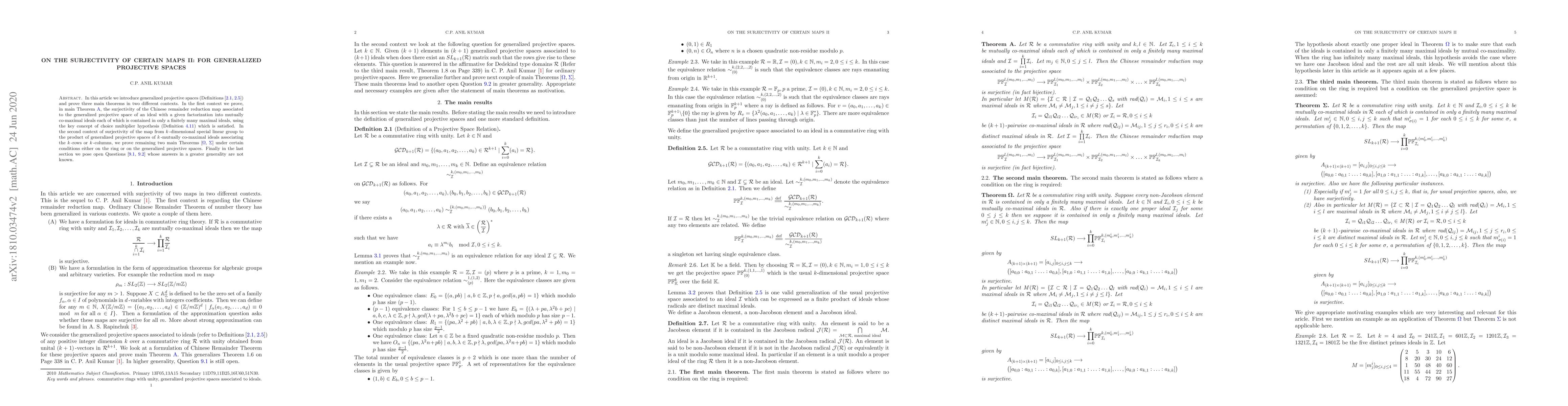 This paper investigates the surjectivity of maps in generalized projective spaces, proving three main theorems. It establishes the surjectivity of a Chinese remainder reduction map under the choice multiplier hypothesis and proves two additional theorems relating to special linear groups and generalized projective spaces, while also posing open questions for future research.
