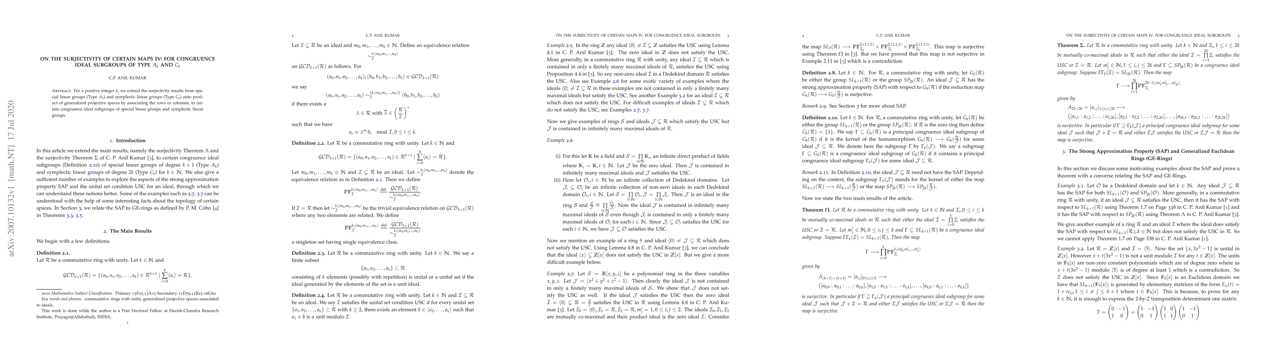 This paper extends surjectivity results for maps from special linear groups (Type $A_k$) and symplectic linear groups (Type $C_k$) to products of generalized projective spaces by examining congruence ideal subgroups within these groups.