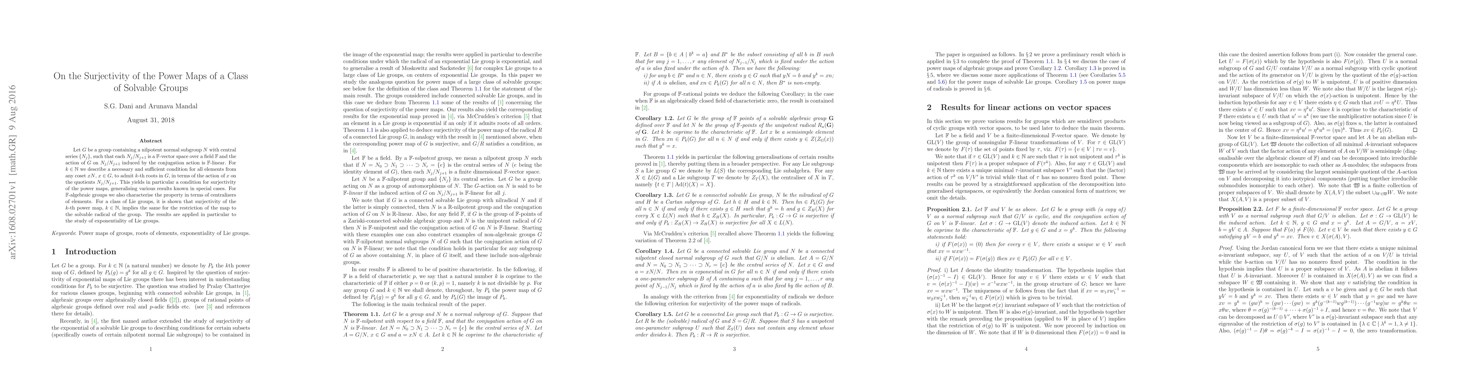 This paper investigates the surjectivity of power maps in solvable groups, providing a necessary and sufficient condition for $k$-th roots in terms of the group's action on certain quotients. It also characterizes this property for $\mathbb{F}$-algebraic groups via centralizers and applies the findings to the study of exponentiality in Lie groups.