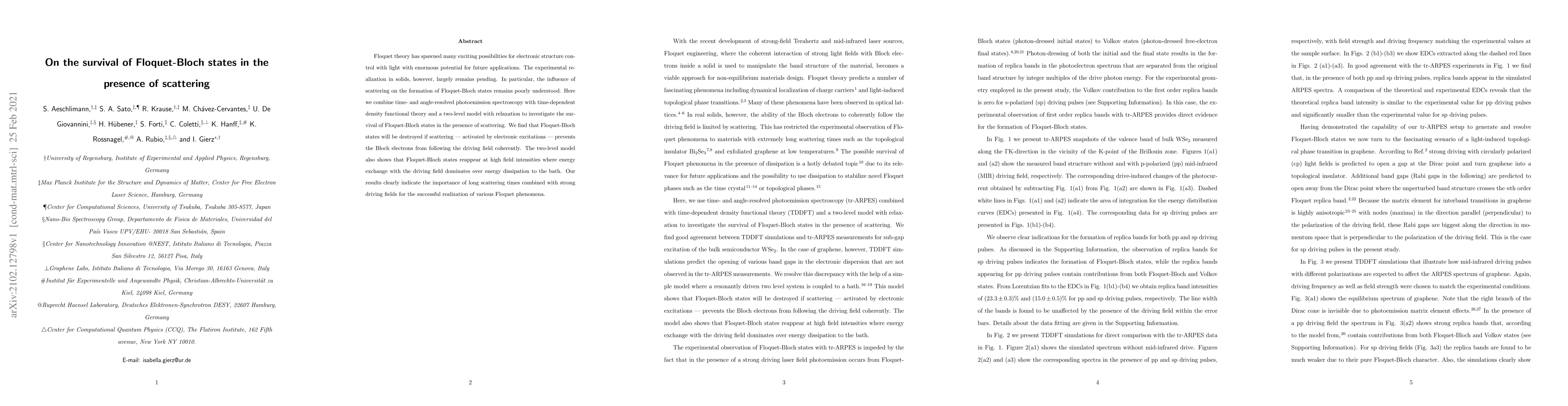 This paper investigates the impact of scattering on the stability of Floquet-Bloch states using time-resolved photoemission spectroscopy and theoretical models. It concludes that coherent electron-field interaction is crucial for Floquet-Bloch state survival, with high field intensities enabling their reappearance despite scattering.
