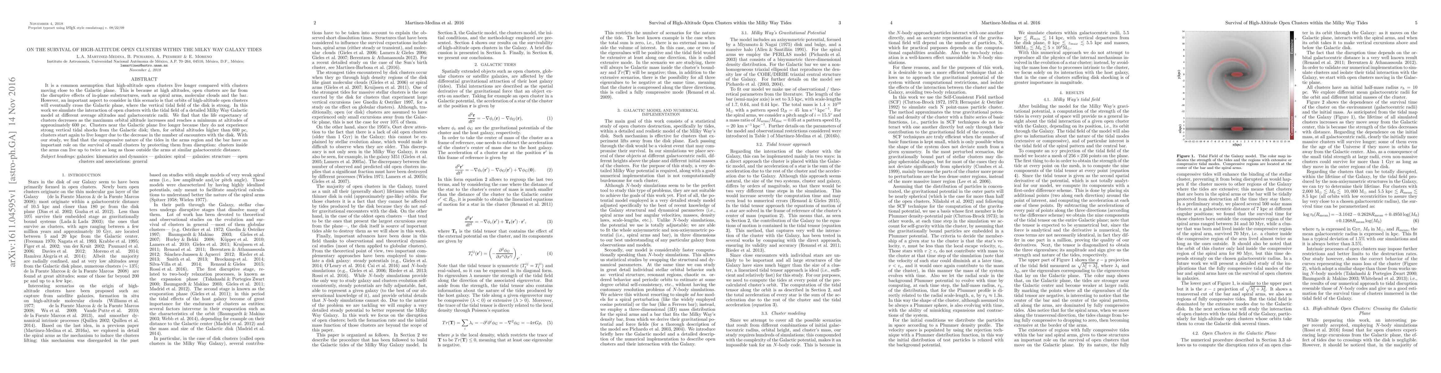 It is a common assumption that high-altitude open clusters live longer compared with clusters moving close to the Galactic plane. This is because at high altitudes, open clusters are far from the disruptive effects of in-plane substructures, such as spiral arms, molecular clouds and the bar. However, an important aspect to consider in this scenario is that orbits of high-altitude open clusters will eventually cross the Galactic plane, where the vertical tidal field of the disk is strong. In this work we simulate the interaction of open clusters with the tidal field of a detailed Milky Way Galactic model at different average altitudes and galactocentric radii. We find that the life expectancy of clusters decreases as the maximum orbital altitude increases and reaches a minimum at altitudes of approximately 600 pc. Clusters near the Galactic plane live longer because they do not experience strong vertical tidal shocks from the Galactic disk; then, for orbital altitudes higher than 600 pc, clusters start again to live longer due to the decrease in the number of encounters with the disk. With our study, we find that the compressive nature of the tides in the arms region and the bar have an important role on the survival of small clusters by protecting them from disruption: clusters inside the arms can live up to twice as long as those outside the arms at similar galactocentric distance.