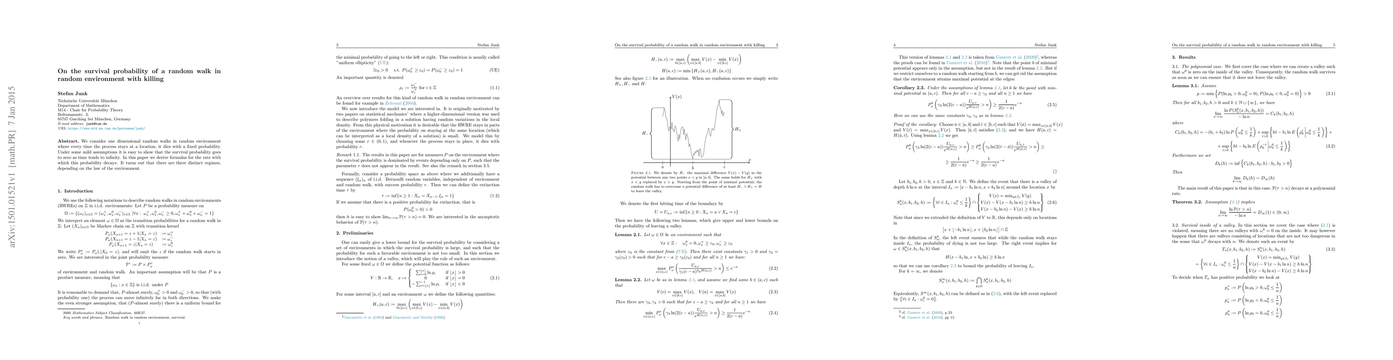 We consider one dimensional random walks in random environment where every time the process stays at a location, it dies with a fixed probability. Under some mild assumptions it is easy to show that the survival probability goes to zero as time tends to infinity. In this paper we derive formulas for the rate with which this probability decays. It turns out that there are three distinct regimes, depending on the law of the environment.