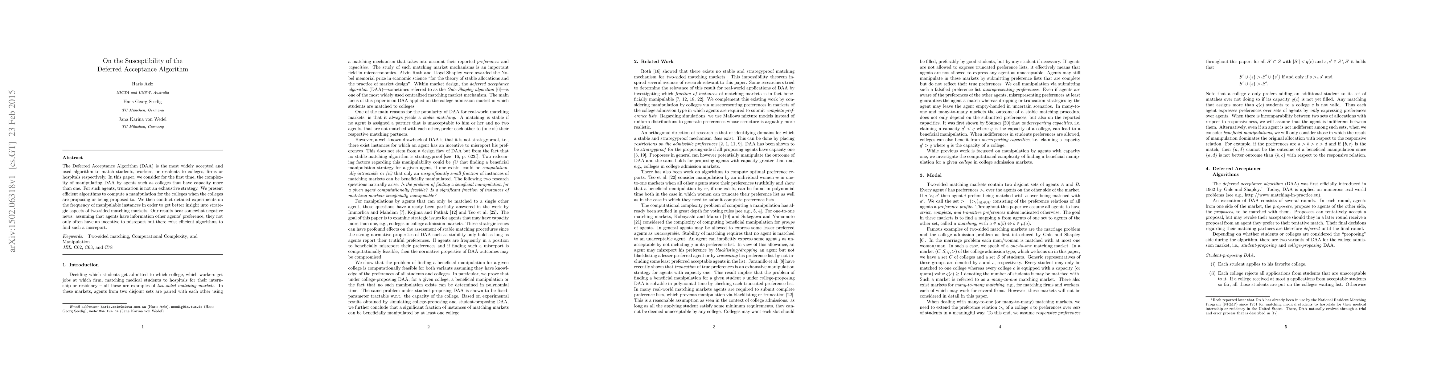 This paper investigates the susceptibility of the Deferred Acceptance Algorithm to manipulation by colleges with capacity greater than one, presenting efficient algorithms to compute such manipulations. Experiments reveal that agents often have incentives to misreport preferences, highlighting strategic vulnerabilities in two-sided matching markets.