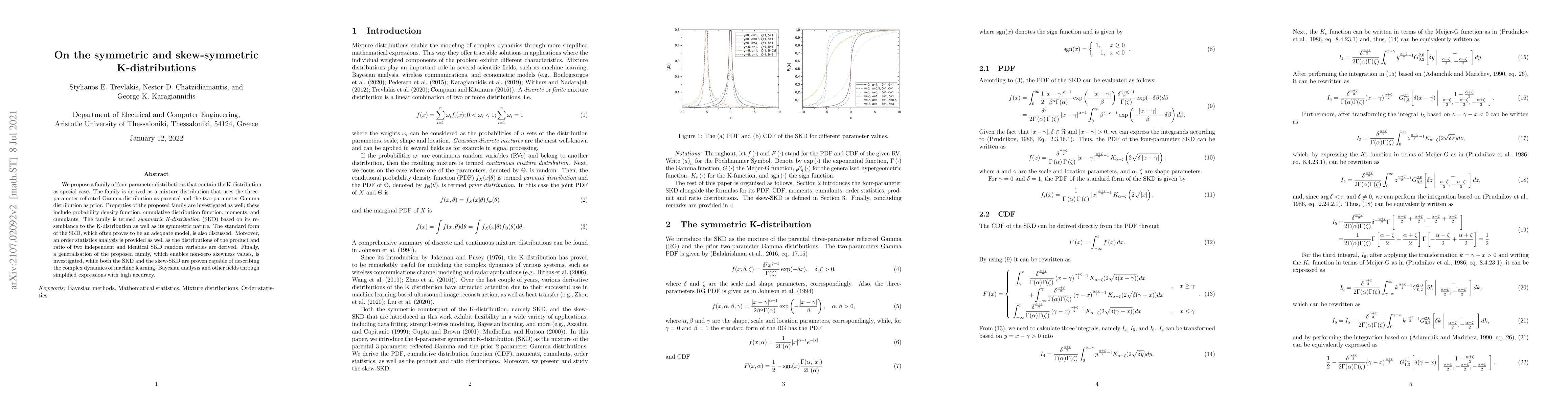 We propose a family of four-parameter distributions that contain the K-distribution as special case. The family is derived as a mixture distribution that uses the three-parameter reflected Gamma distribution as parental and the two-parameter Gamma distribution as prior. Properties of the proposed family are investigated as well; these include probability density function, cumulative distribution function, moments, and cumulants. The family is termed symmetric K-distribution (SKD) based on its resemblance to the K-distribution as well as its symmetric nature. The standard form of the SKD, which often proves to be an adequate model, is also discussed. Moreover, an order statistics analysis is provided as well as the distributions of the product and ratio of two independent and identical SKD random variables are derived. Finally, a generalisation of the proposed family, which enables non-zero skewness values, is investigated, while both the SKD and the skew-SKD are proven capable of describing the complex dynamics of machine learning, Bayesian analysis and other fields through simplified expressions with high accuracy.