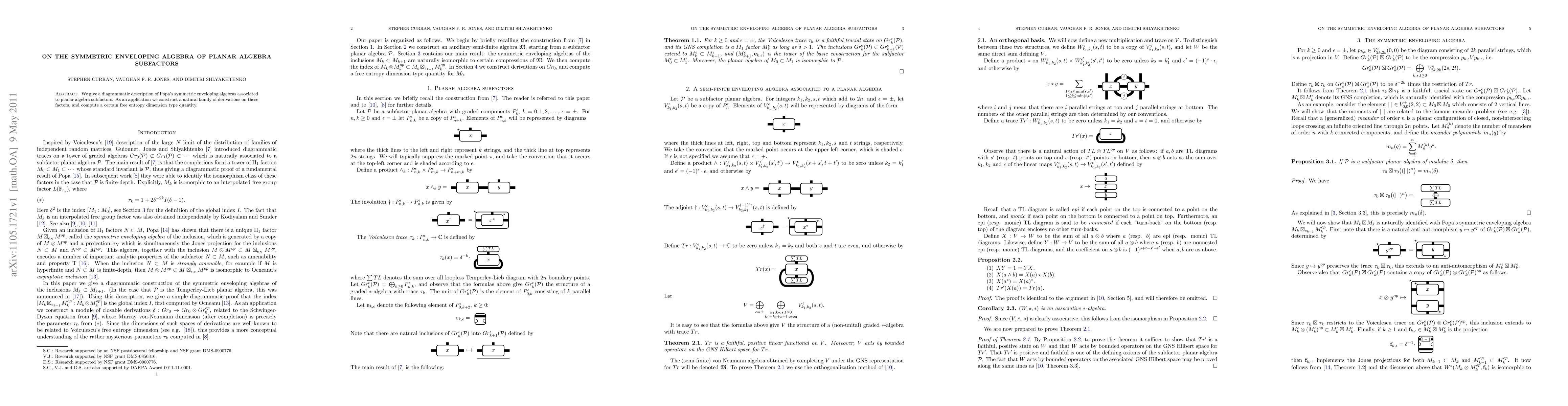 This paper provides a diagrammatic description of Popa's symmetric enveloping algebras for planar algebra subfactors, and constructs a family of derivations on these factors, calculating a related free entropy dimension quantity.