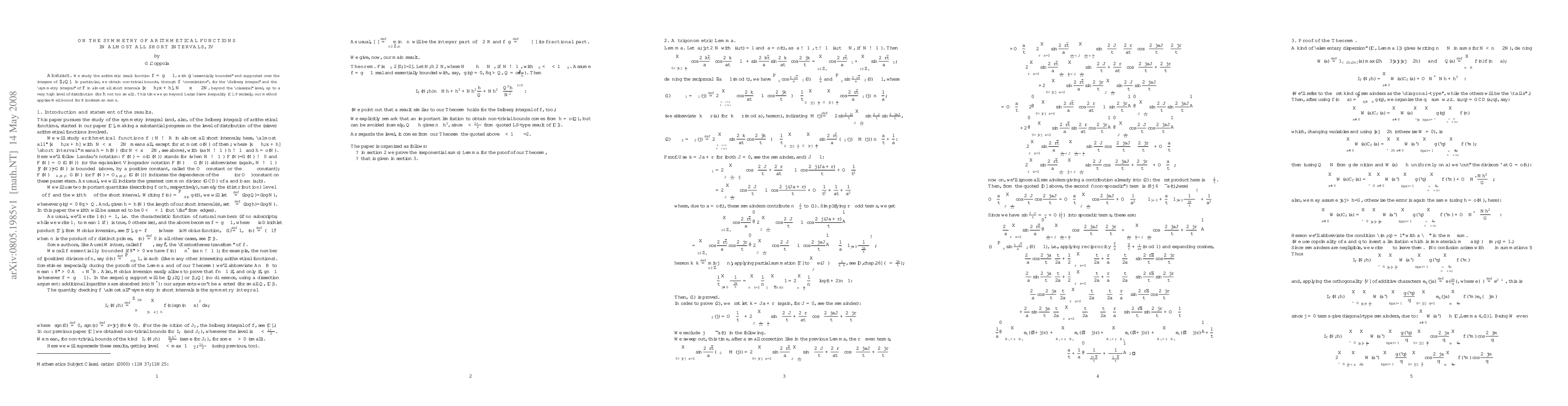 This paper investigates the symmetry of an essentially bounded arithmetic function in almost all short intervals, achieving non-trivial bounds for the Selberg and symmetry integrals via correlations and extending beyond the classical level using Weil's bound for Kloosterman sums. The method surpasses the Large Sieve inequality for sufficiently large intervals.