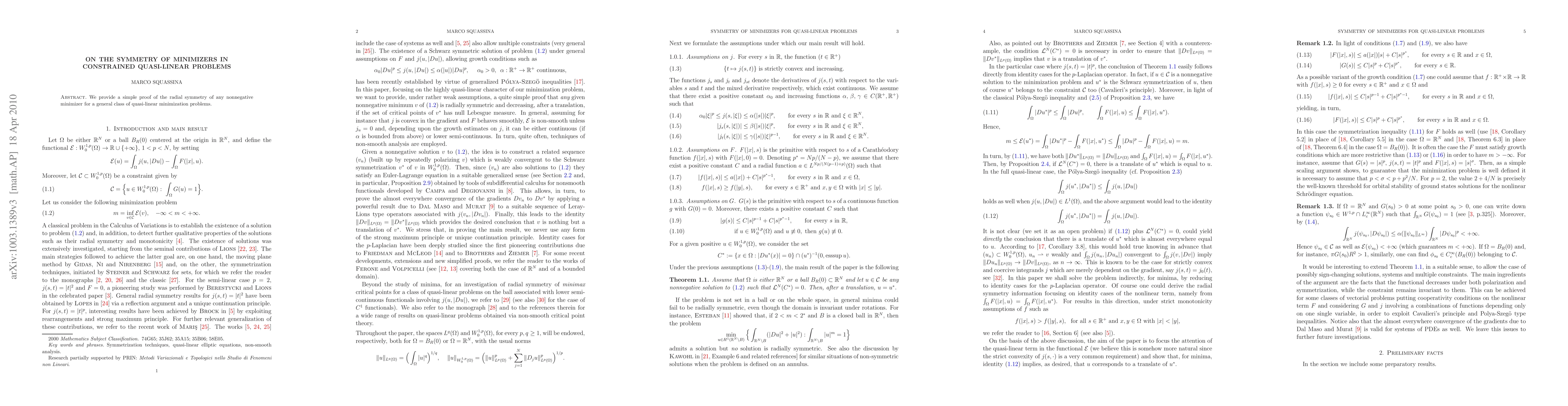 This research presents a straightforward proof showing that nonnegative solutions minimizing a broad category of quasi-linear problems are radially symmetric. It focuses on the symmetry properties of minimizers under certain constraints.