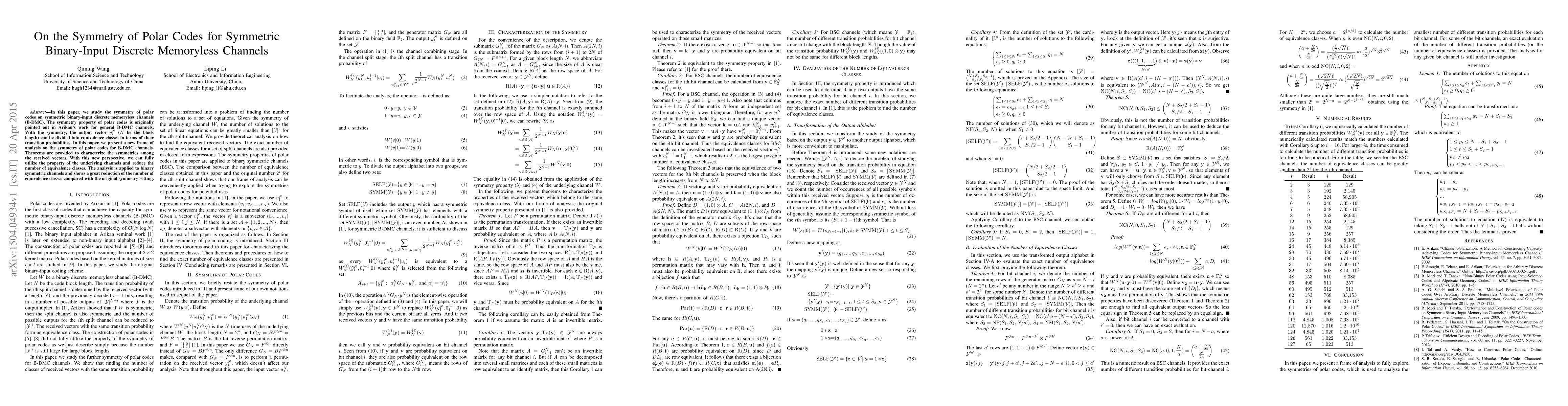 This paper explores the symmetry property of polar codes for symmetric binary-input discrete memoryless channels, offering a new analytical framework. It provides theorems to characterize the equivalence classes of received vectors based on their transition probabilities.