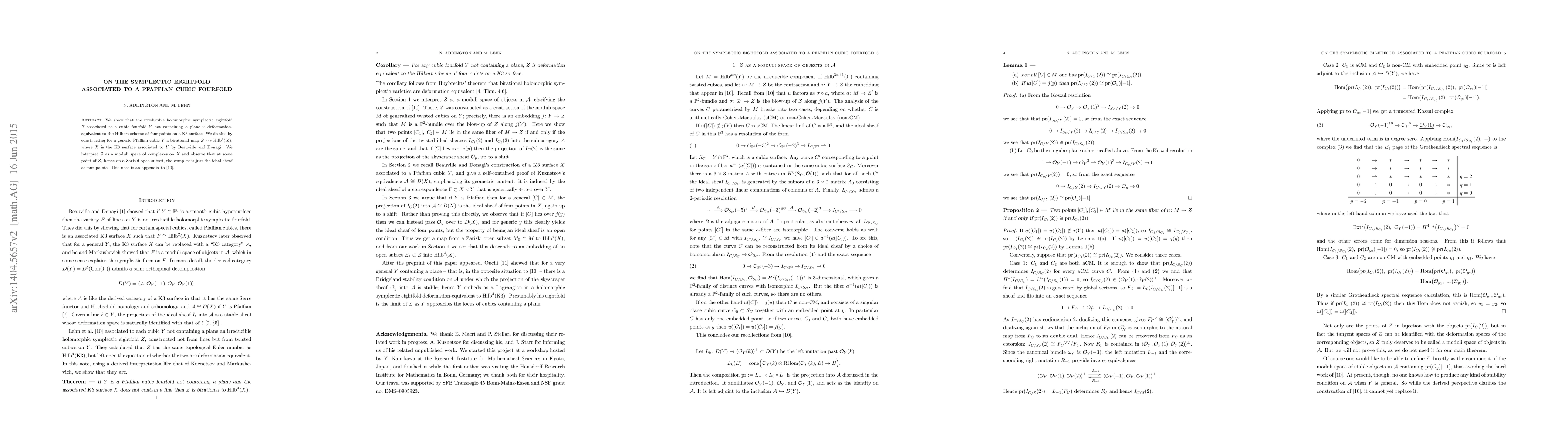 This paper demonstrates that the irreducible holomorphic symplectic eightfold Z linked to a Pfaffian cubic fourfold Y, which does not contain a plane, is deformation-equivalent to the Hilbert scheme of four points on a K3 surface. The authors construct a birational map from Z to Hilb^4(X), where X is the K3 surface associated with Y, and interpret Z as a moduli space of complexes on X.
