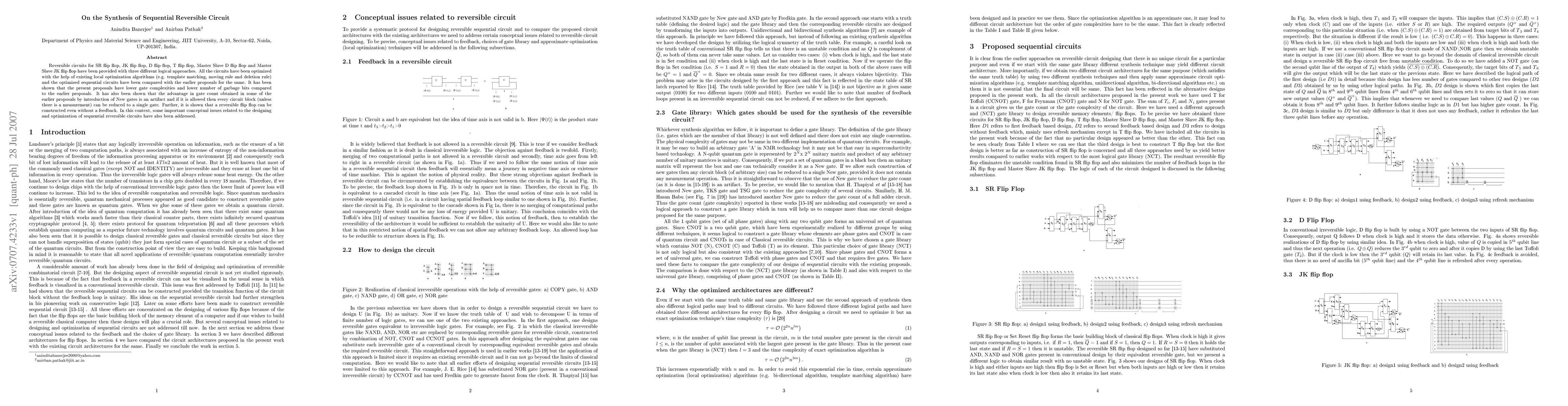 Reversible circuits for SR flip flop, JK flip flop, D flip flop, T flip flop, Master Slave D flip flop and Master Slave JK flip flop have been provided with three different logical approaches. All the circuits have been optimized with the help of existing local optimization algorithms (e.g. template matching, moving rule and deletion rule) and the optimized sequential circuits have been compared with the earlier proposals for the same. It has been shown that the present proposals have lower gate complexities and lower number of garbage bits compared to the earlier proposals. It has also been shown that the advantage in gate count obtained in some of the earlier proposals by introduction of New gates is an \textcolor{black}{artifact} and if it is allowed then every circuit block (unless there is a measurement) can be reduced to a single gate. Further, it is shown that a reversible flip flop can be constructed even without a feedback. In this context, some important conceptual issues related to the designing and optimization of sequential reversible circuits have also been addressed.
