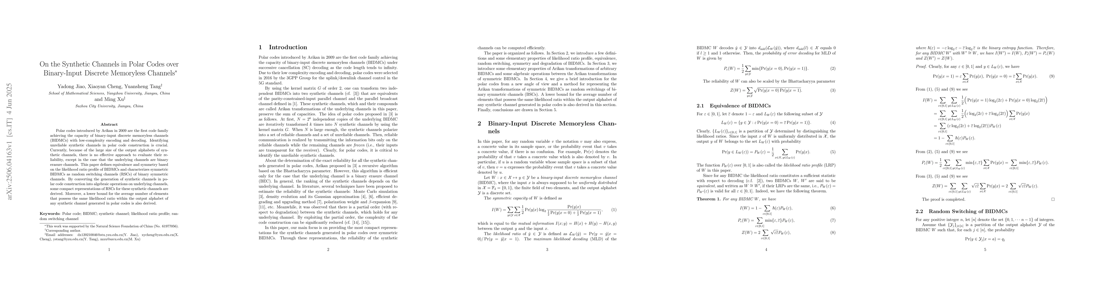 This work distinguishes itself by offering a new perspective on evaluating unreliable synthetic channels in polar codes, leveraging algebraic operations and random switching channels, which was not previously explored in the context of BIDMCs.