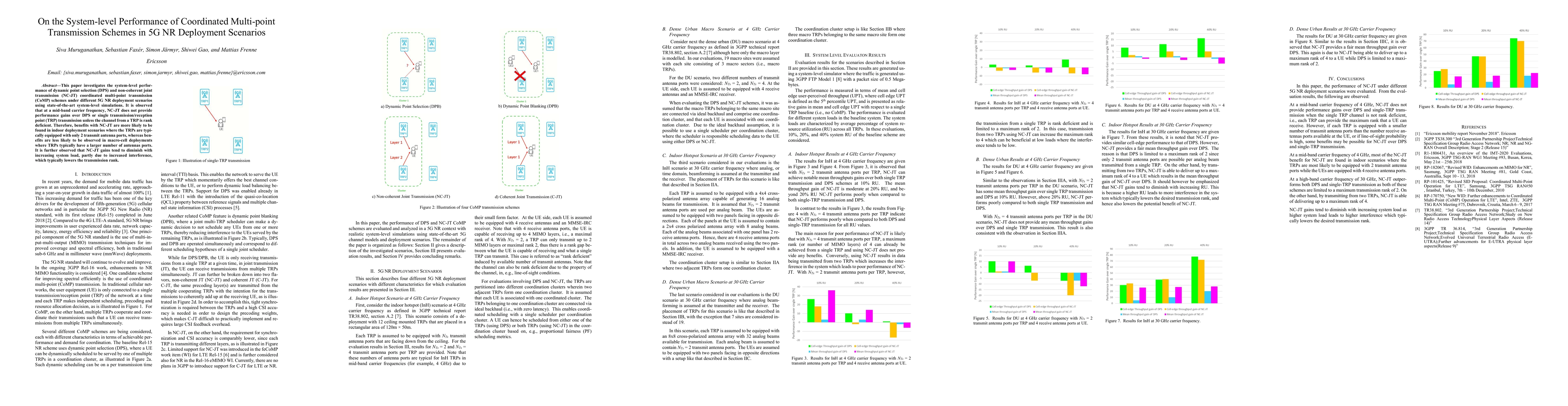 This paper evaluates the performance of dynamic point selection and non-coherent joint transmission CoMP schemes in various 5G NR deployment scenarios, finding that NC-JT offers limited benefits over DPS unless the TRP channel is rank deficient, with greater potential in indoor settings. NC-JT gains diminish with increased system load due to higher interference.