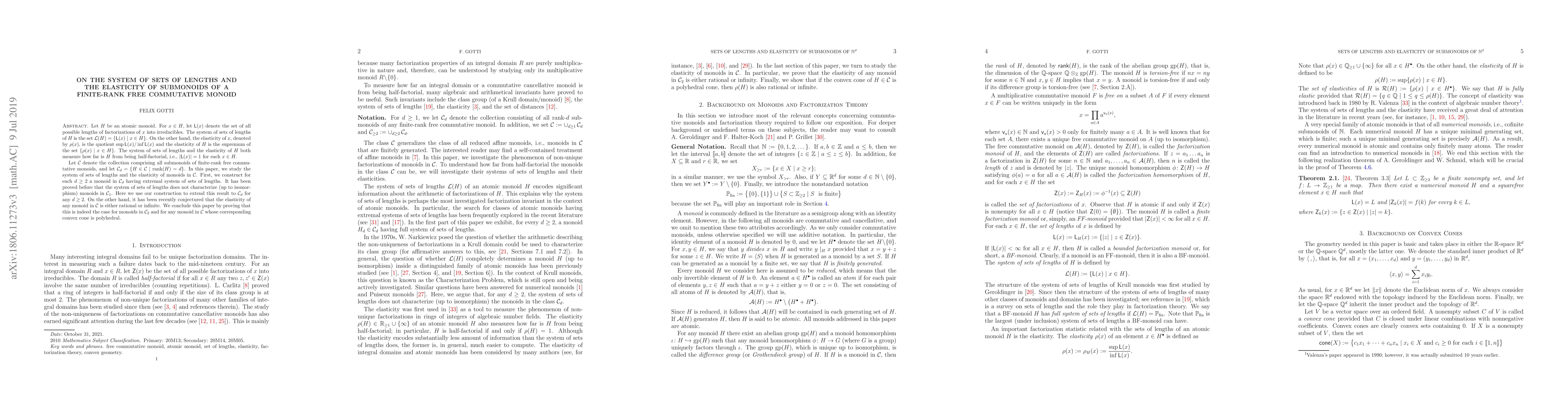 Let $H$ be an atomic monoid. For $x \in H$, let $\mathsf{L}(x)$ denote the set of all possible lengths of factorizations of $x$ into irreducibles. The system of sets of lengths of $H$ is the set $\mathcal{L}(H) = \{\mathsf{L}(x) \mid x \in H\}$. On the other hand, the elasticity of $x$, denoted by $\rho(x)$, is the quotient $\sup \mathsf{L}(x)/\inf \mathsf{L}(x)$ and the elasticity of $H$ is the supremum of the set $\{\rho(x) \mid x \in H\}$. The system of sets of lengths and the elasticity of $H$ both measure how far is $H$ from being half-factorial, i.e., $|\mathsf{L}(x)| = 1$ for each $x \in H$. Let $\mathcal{C}$ denote the collection comprising all submonoids of finite-rank free commutative monoids, and let $\mathcal{C}_d = \{H \in \mathcal{C} \mid \text{rank}(H) = d\}$. In this paper, we study the system of sets of lengths and the elasticity of monoids in $\mathcal{C}$. First, we construct for each $d \ge 2$ a monoid in $\mathcal{C}_d$ having extremal system of sets of lengths. It has been proved before that the system of sets of lengths does not characterize (up to isomorphism) monoids in $\mathcal{C}_1$. Here we use our construction to extend this result to $\mathcal{C}_d$ for any $d \ge 2$. On the other hand, it has been recently conjectured that the elasticity of any monoid in $\mathcal{C}$ is either rational or infinite. We conclude this paper by proving that this is indeed the case for monoids in $\mathcal{C}_2$ and for any monoid in $\mathcal{C}$ whose corresponding convex cone is polyhedral.