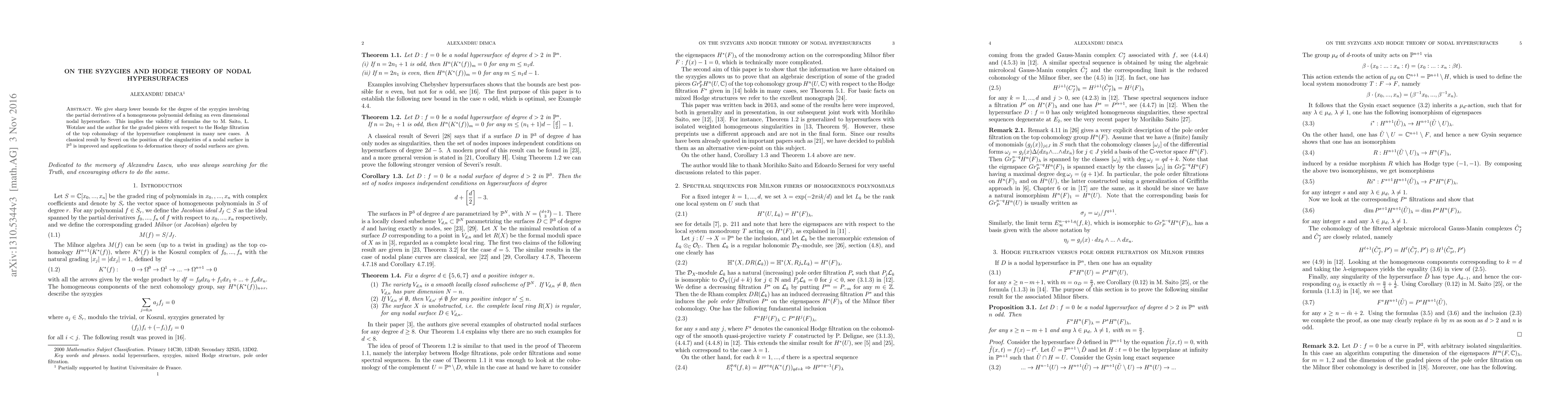 Researchers establish lower bounds for syzygies involving nodal hypersurface partial derivatives, improving a classical result on singularities in $oldsymbol{ ext{P}}^3$ and shedding light on deformation theory of nodal surfaces.