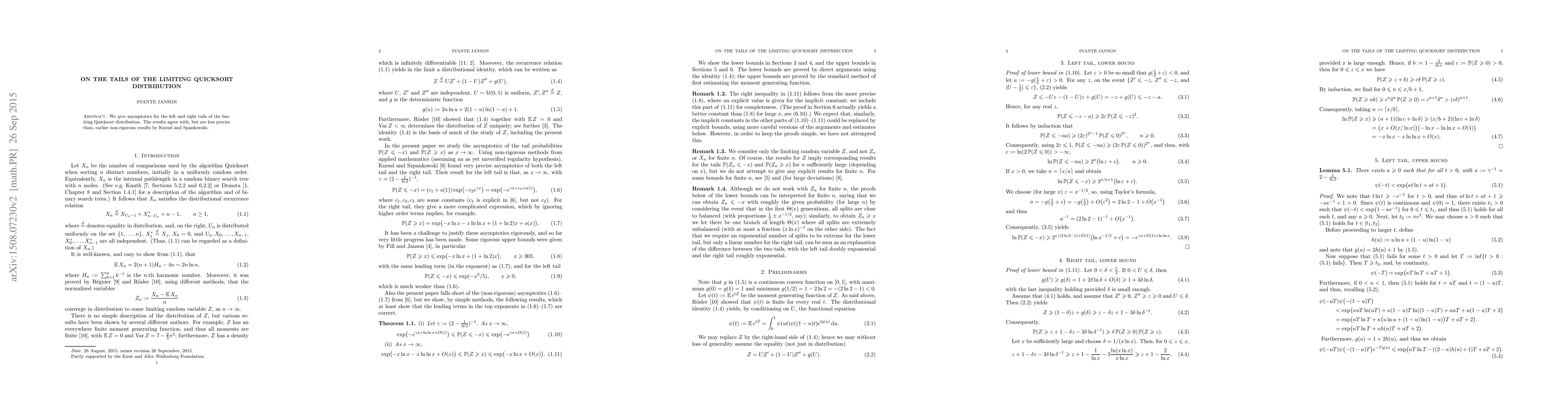 This paper provides asymptotics for the left and right tails of the limiting Quicksort distribution, agreeing with earlier results but offering less precise estimates.