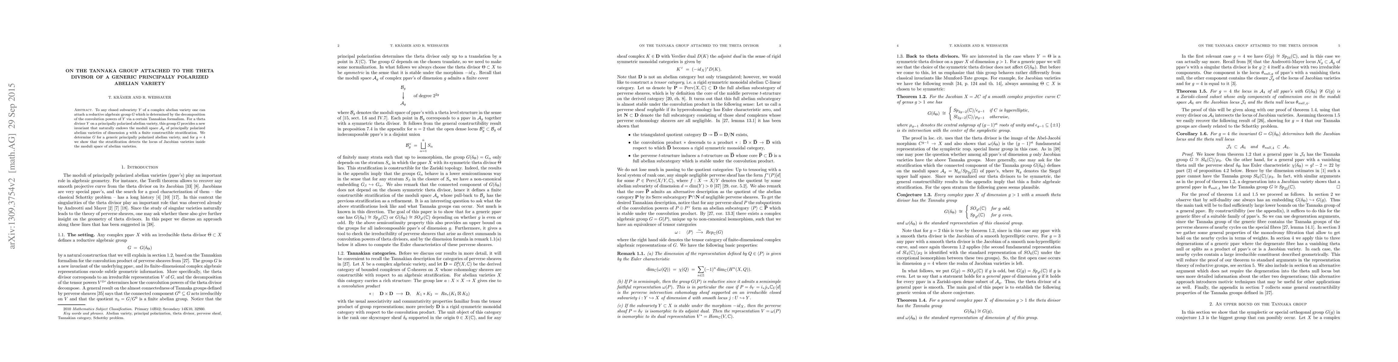 To any closed subvariety $Y$ of a complex abelian variety one can attach a reductive algebraic group $G$ which is determined by the decomposition of the convolution powers of $Y$ via a certain Tannakian formalism. For a theta divisor $Y$ on a principally polarized abelian variety, this group $G$ provides a new invariant that naturally endows the moduli space $A_g$ of principally polarized abelian varieties of dimension $g$ with a finite constructible stratification. We determine $G$ for a generic principally polarized abelian variety, and for $g=4$ we show that the stratification detects the locus of Jacobian varieties inside the moduli space of abelian varieties.