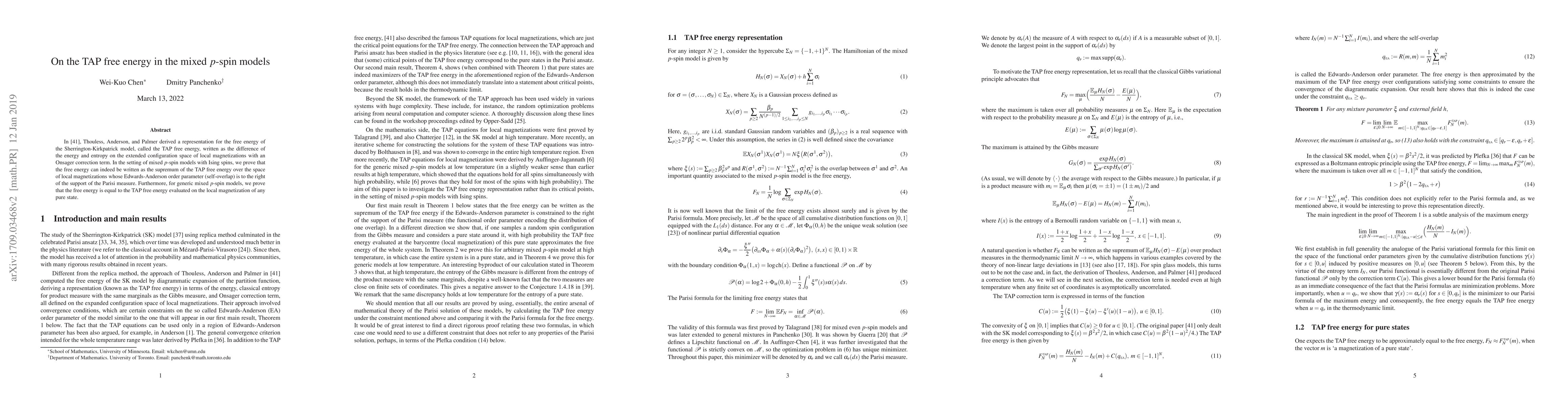 In [Physical Magazine, 35(3):593-601, 1977], Thouless, Anderson, and Palmer derived a representation for the free energy of the Sherrington-Kirkpatrick model, called the TAP free energy, written as the difference of the energy and entropy on the extended configuration space of local magnetizations with an Onsager correction term. In the setting of mixed $p$-spin models with Ising spins, we prove that the free energy can indeed be written as the supremum of the TAP free energy over the space of local magnetizations whose Edwards-Anderson order parameter (self-overlap) is to the right of the support of the Parisi measure. Furthermore, for generic mixed $p$-spin models, we prove that the free energy is equal to the TAP free energy evaluated on the local magnetization of any pure state.