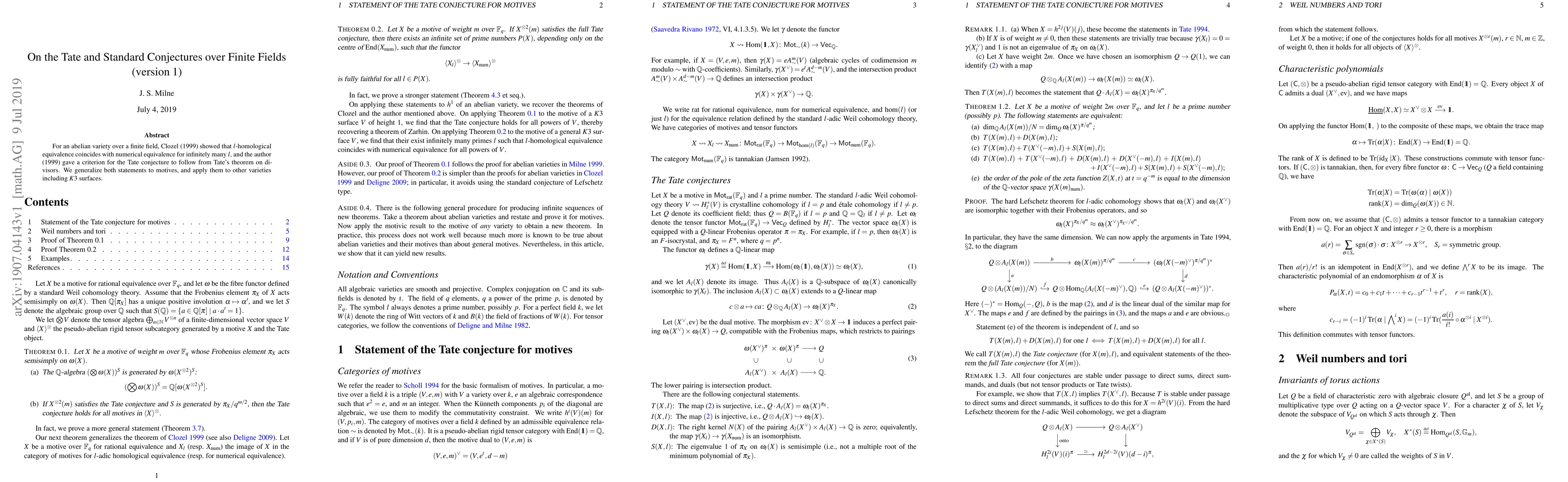 For an abelian variety over a finite field, Clozel (1999) showed that l-homological equivalence coincides with numerical equivalence for infinitely many l, and the author (1999) gave a criterion for the Tate conjecture to follow from Tate's theorem on divisors. We generalize both statements to motives, and apply them to other varieties including K3 surfaces.