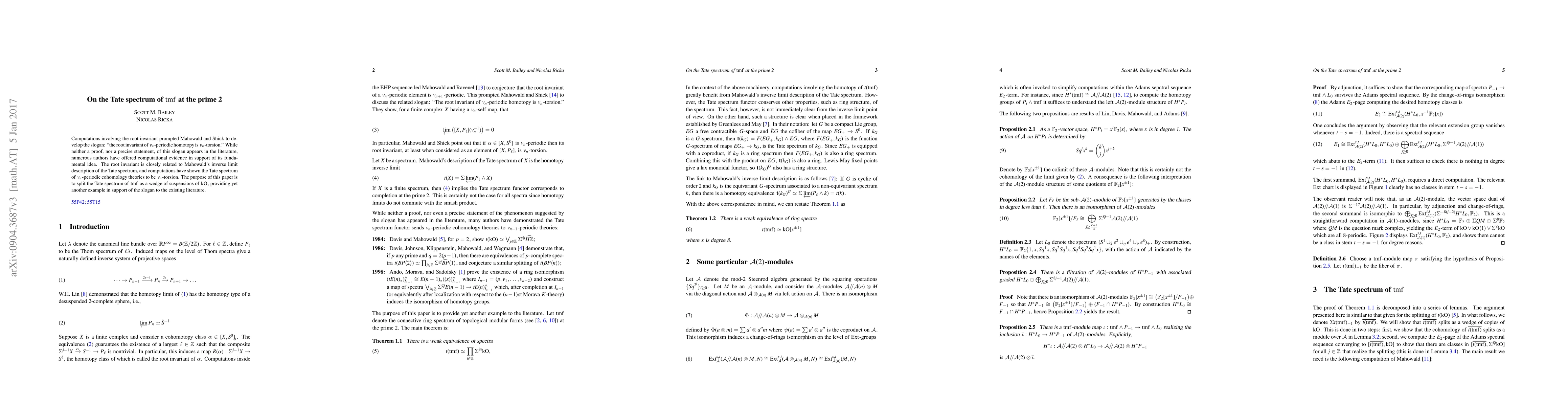 This paper investigates the Tate spectrum of the complex cobordism ring spectrum tmf at the prime 2, confirming that it splits as a wedge of suspensions of kO spectra, thus offering additional evidence for the slogan that the root invariant of v_n periodic homotopy is v_n torsion.