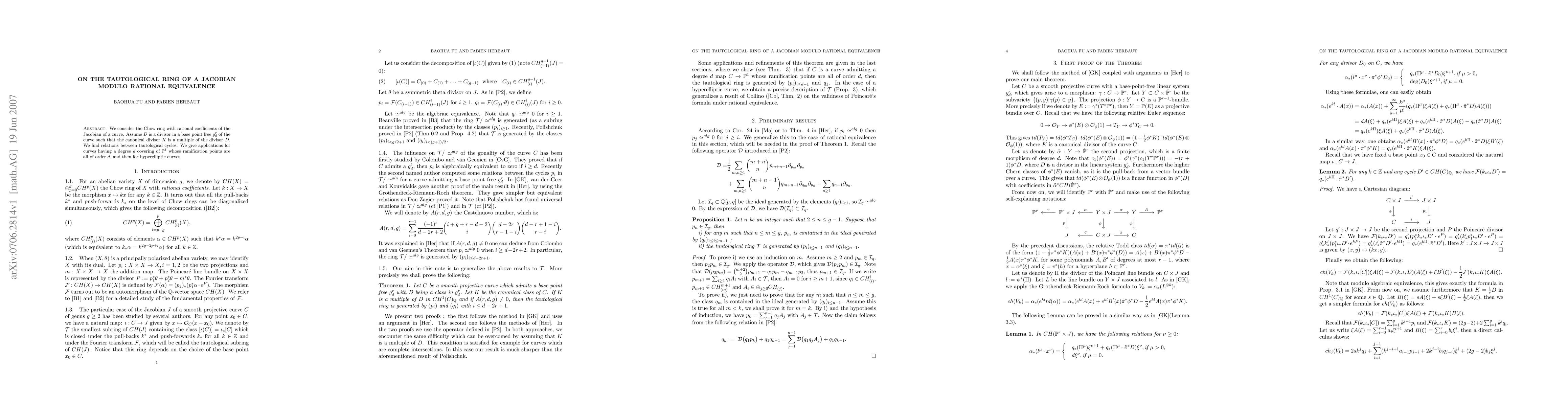 This paper explores the tautological ring of the Jacobian of a curve with rational coefficients, identifying relations between tautological cycles when the canonical divisor is a multiple of a given divisor. It applies these findings to curves with degree d coverings of P^1 and to hyperelliptic curves.