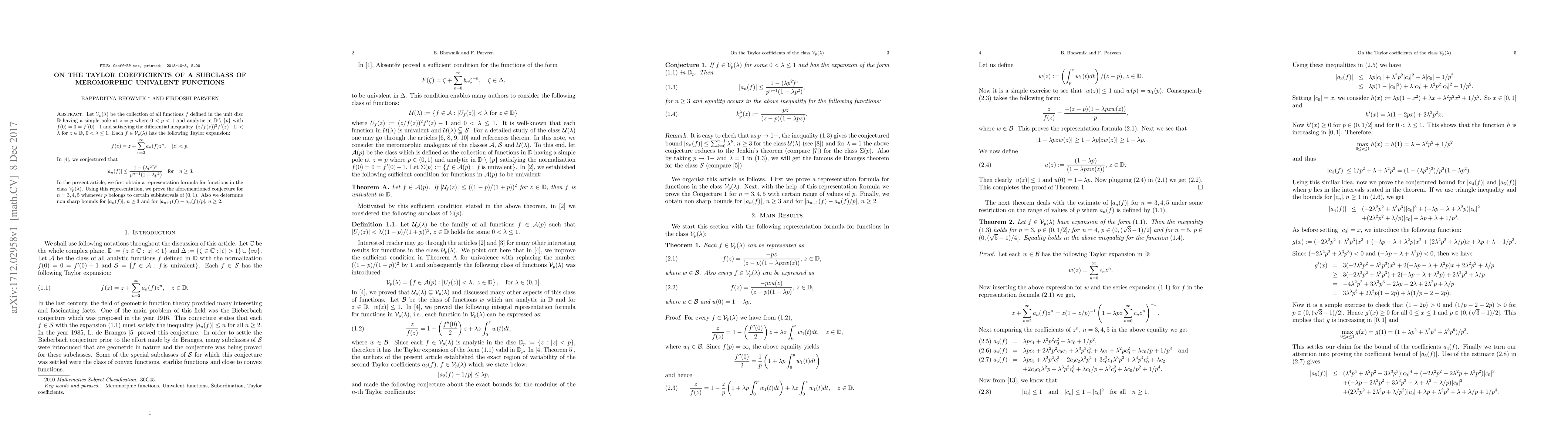 Researchers investigate a class of meromorphic functions with specific properties and prove bounds on their Taylor coefficients for certain values of $p$ and $ u$.