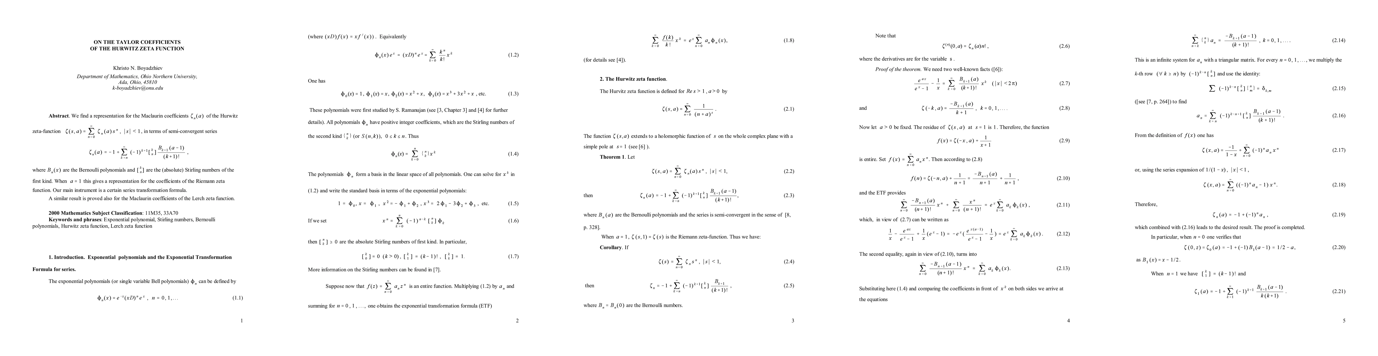 This paper provides a representation for the Maclaurin coefficients of the Hurwitz and Lerch zeta functions in terms of semi-convergent series using Bernoulli polynomials and Stirling numbers, employing a series transformation formula as the primary tool.