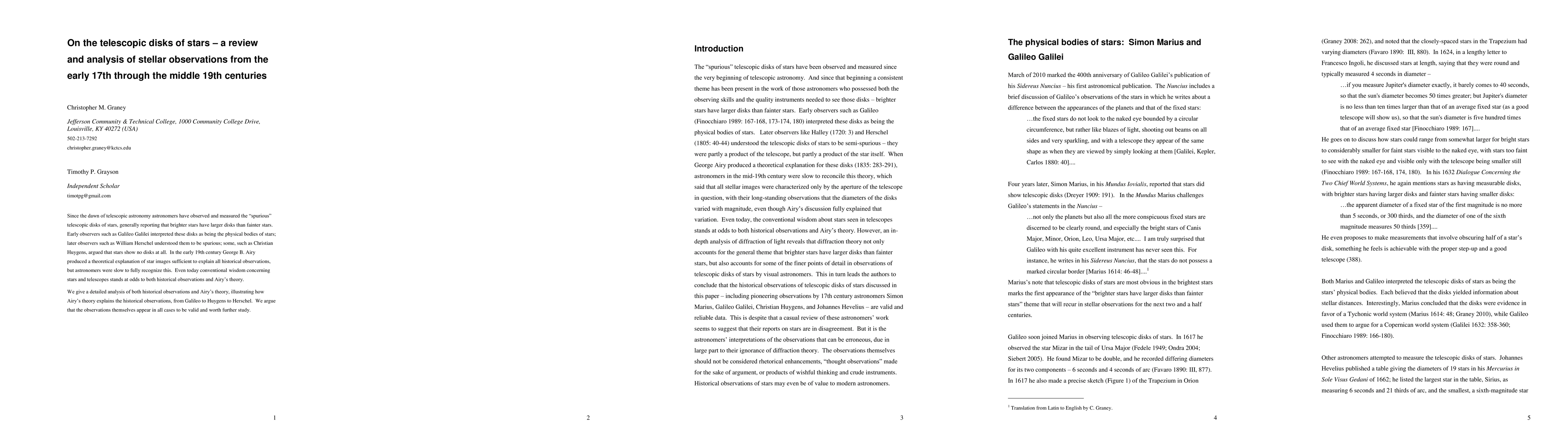 Since the dawn of telescopic astronomy astronomers have observed and measured the "spurious" telescopic disks of stars, generally reporting that brighter stars have larger disks than fainter stars. Early observers such as Galileo Galilei interpreted these disks as being the physical bodies of stars; later observers such as William Herschel understood them to be spurious; some, such as Christian Huygens, argued that stars show no disks at all. In the early 19th century George B. Airy produced a theoretical explanation of star images sufficient to explain all historical observations, but astronomers were slow to fully recognize this. Even today conventional wisdom concerning stars and telescopes stands at odds to both historical observations and Airy's theory. We give a detailed analysis of both historical observations and Airy's theory, illustrating how Airy's theory explains the historical observations, from Galileo to Huygens to Herschel. We argue that the observations themselves appear in all cases to be valid and worth further study.