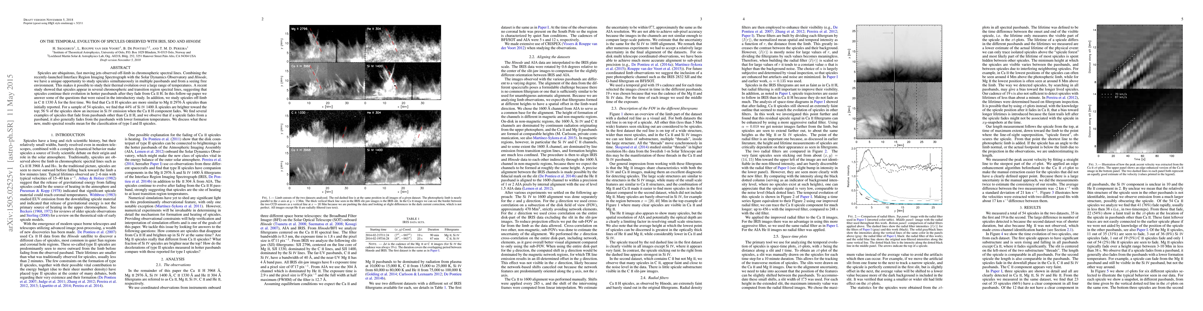 This paper investigates the temporal evolution of spicules using data from IRIS, SDO, and Hinode, revealing that Ca II H spicules closely resemble Mg II spicules. It finds that 44% of Si IV spicules are brighter at the top, and 56% show increased Si IV emission as Ca II H fades. The study also observes that spicules tend to fade from lower temperature passbands, providing new insights into the classification of type I and II spicules.