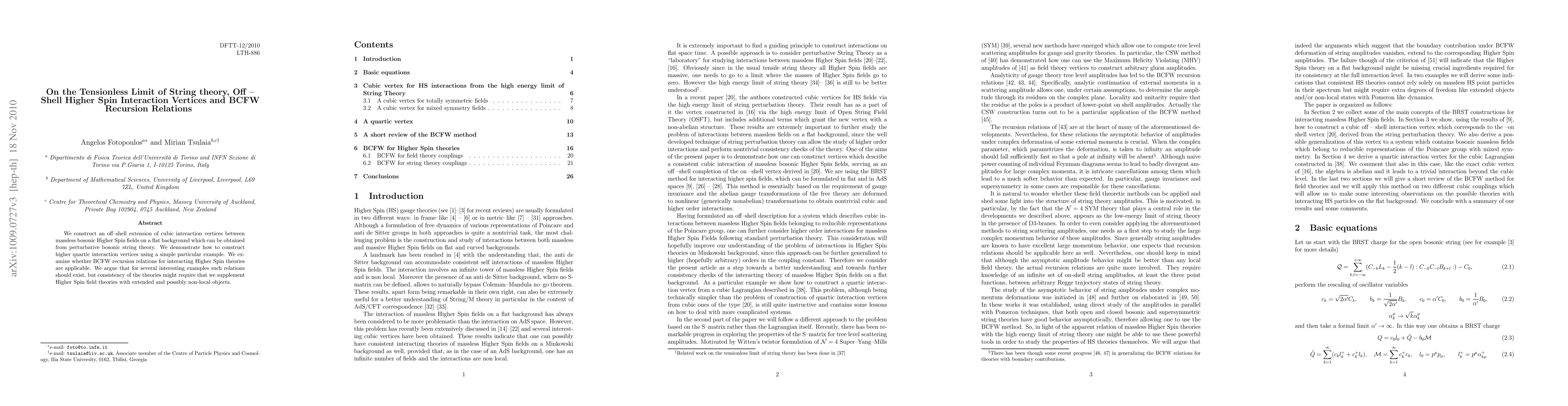 This paper extends cubic interaction vertices for massless bosonic Higher Spin fields from string theory to an off-shell framework and explores the construction of higher-order quartic vertices. It investigates the applicability of BCFW recursion relations in these theories, suggesting that while such relations likely exist, consistency may necessitate supplementing Higher Spin field theories with extended or non-local objects.