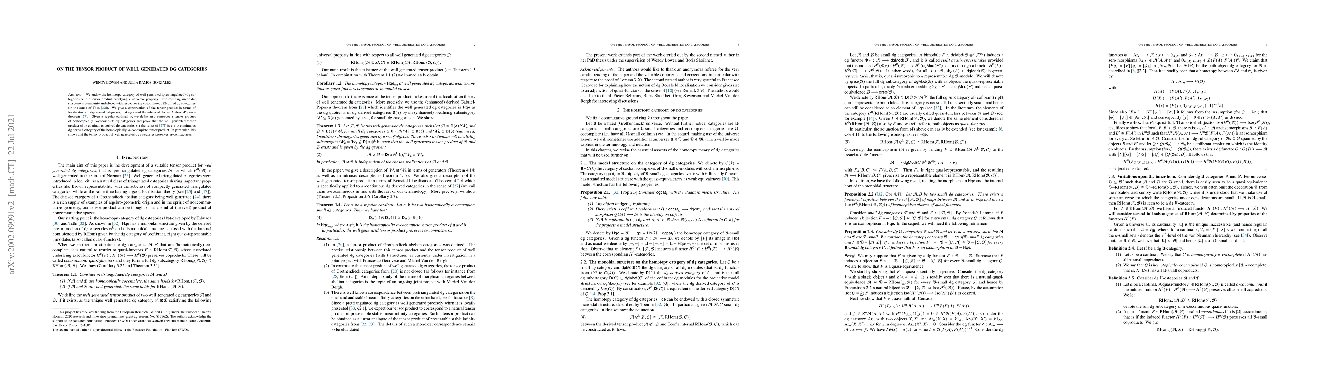 This paper constructs a tensor product for the homotopy category of well generated dg categories, showing it to be symmetric and closed. It leverages localizations of dg derived categories and proves that the tensor product preserves alpha-compactness for homotopically alpha-cocomplete dg categories.