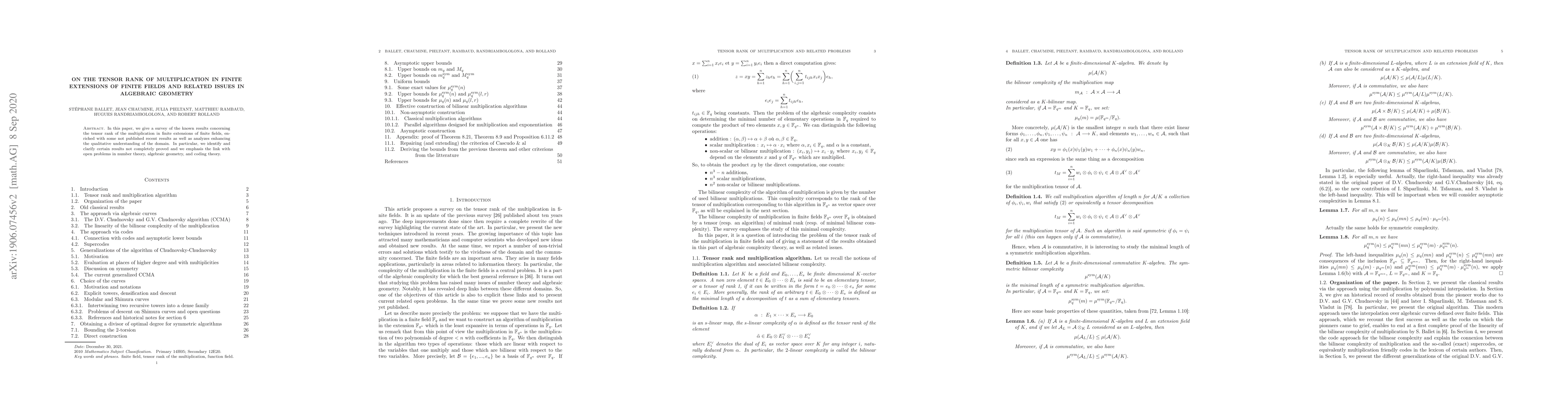 In this paper, we give a survey of the known results concerning the tensor rank of the multiplication in finite extensions of finite fields, enriched with some not published recent results as well as analyzes enhancing the qualitative understanding of the domain. In particular, we identify and clarify certain results not completely proved and we emphasis the link with open problems in number theory, algebraic geometry, and coding theory.