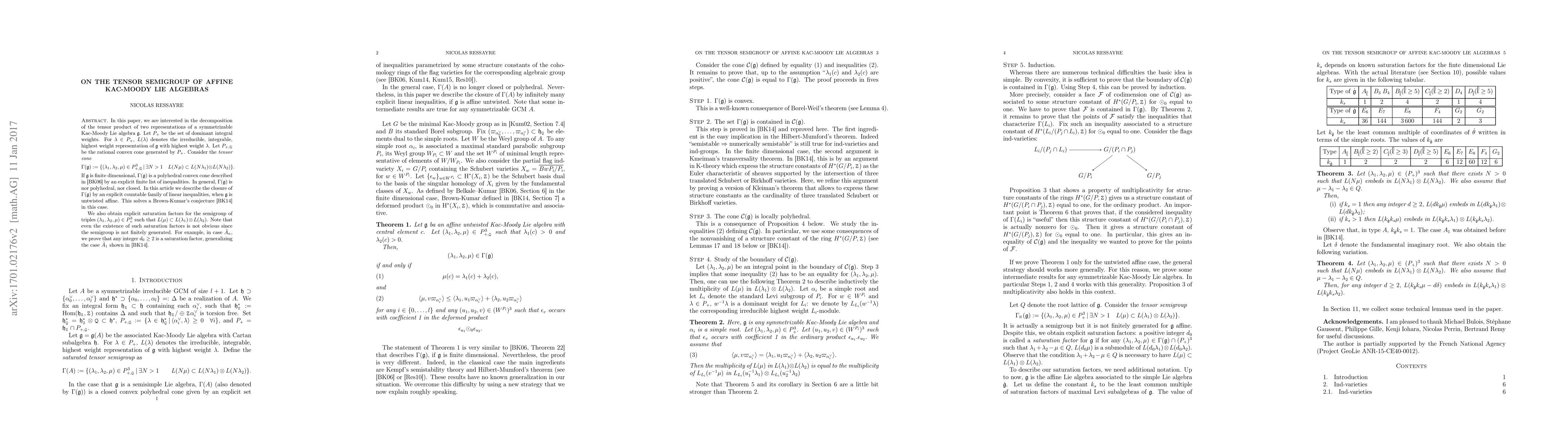 In this paper, we are interested in the decomposition of the tensor product of two representations of a symmetrizable Kac-Moody Lie algebra $\mathfrak g$. Let $P\_+$ be the set of dominant integral weights. For $\lambda\in P\_+$ , $L(\lambda)$ denotes the irreducible, integrable, highest weight representation of g with highest weight $\lambda$. Let $P\_{+,\mathbb Q}$ be the rational convex cone generated by $P\_+$. Consider the tensor cone $\Gamma(\mathfrak g) := \{(\lambda\_1 ,\lambda\_2, \mu) $\in$ P\_{+,\mathbb Q}^3\,| \exists N \textgreater{} 1 L(N\mu) \subset L(N \lambda\_1)\otimes L(N \lambda\_2)\}$. If $\mathfrak g$ is finite dimensional, $\Gamma(\mathfrak g)$ is a polyhedral convex cone described in 2006 by Belkale-Kumar by an explicit finite list of inequalities. In general, $\Gamma(\mathfrak g)$ is nor polyhedral, nor closed. In this article we describe the closure of $\Gamma(\mathfrak g)$ by an explicit countable family of linear inequalities, when $\mathfrak g$ is untwisted affine. This solves a Brown-Kumar's conjecture in this case. We also obtain explicit saturation factors for the semigroup of triples $(\lambda\_1, \lambda\_2 , \mu) $\in$ P\_+^3$ such that $L(\mu) $\subset$ L(\lambda\_1) \otimes L(\lambda\_2)$. Note that even the existence of such saturation factors is not obvious since the semigroup is not finitely generated. For example, in type $A , we prove that any integer $d\geq 2$ is a saturation factor, generalizing the case ${\tilde A}\_1$ shown by Brown-Kumar.
