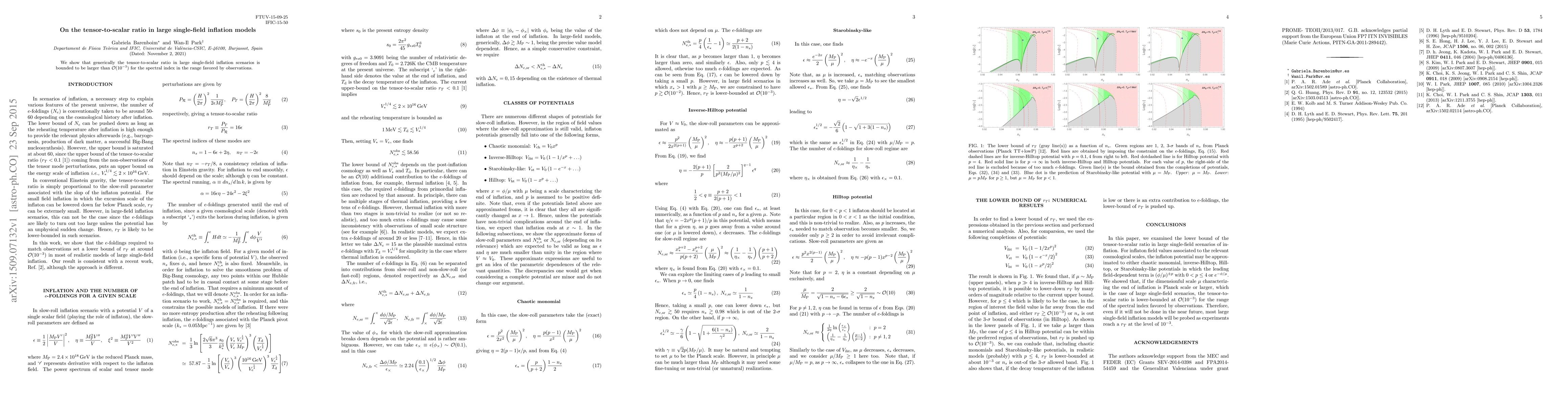 Summary: This paper demonstrates that in large single-field inflation models, the tensor-to-scalar ratio is typically greater than $\mathcal{O}(10^{-3})$, aligning with the spectral index range supported by observational data.
