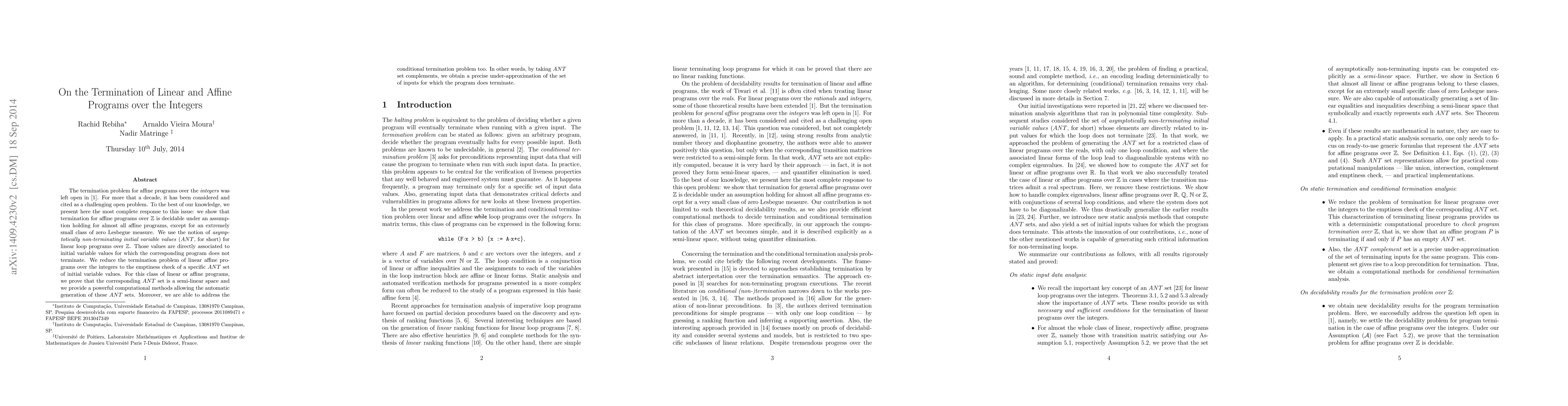 The authors provided a novel reduction from linear affine programs to the emptiness check of specific sets of initial variable values, allowing for the decidable termination problem.