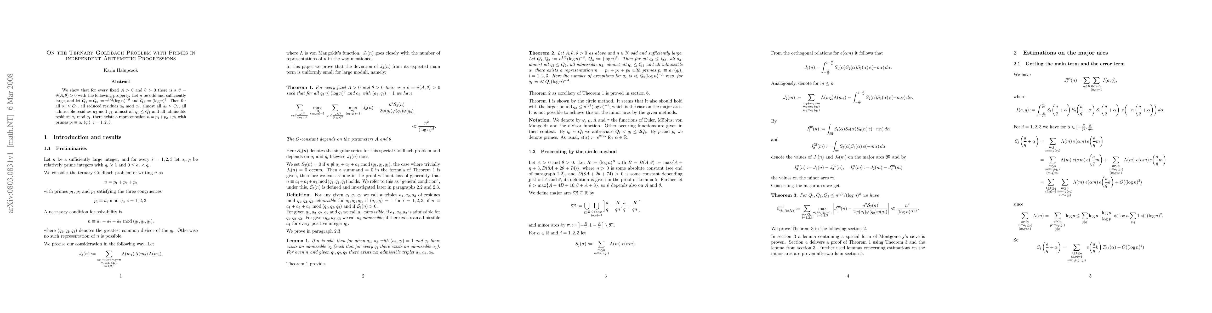 This research demonstrates that for any given positive A and theta, there exists a theta(A,theta) such that for large odd n, almost all combinations of primes p1, p2, p3 satisfying specified congruence conditions can represent n. These primes are in independent arithmetic progressions with specified moduli and residues.