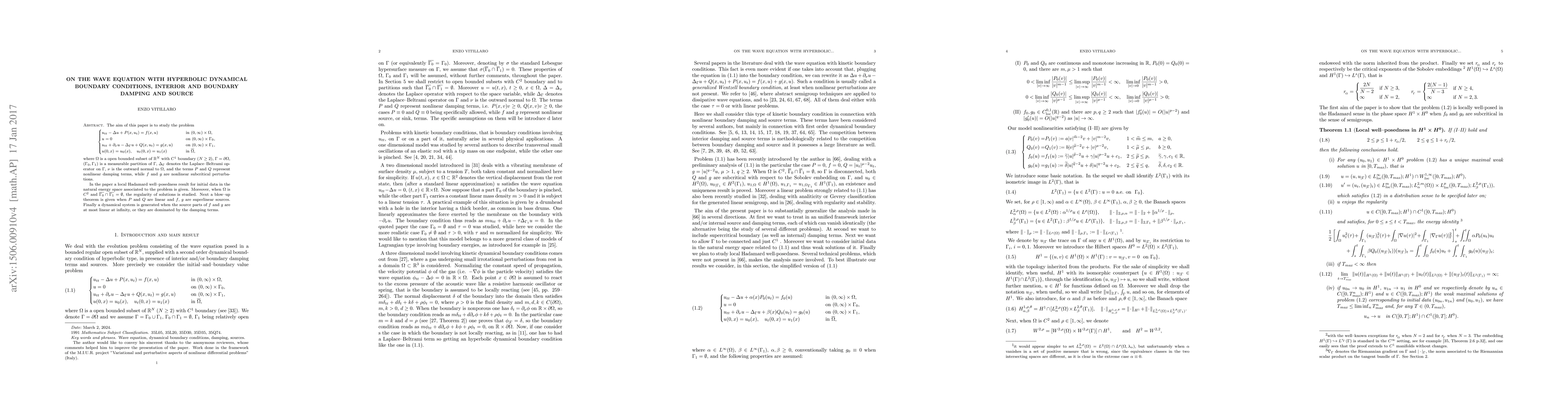 Summary: This paper investigates local Hadamard well-posedness for a wave equation with hyperbolic boundary conditions, internal/boundary damping, and sources, focusing on solution regularity and generating a dynamical system under specific source conditions.