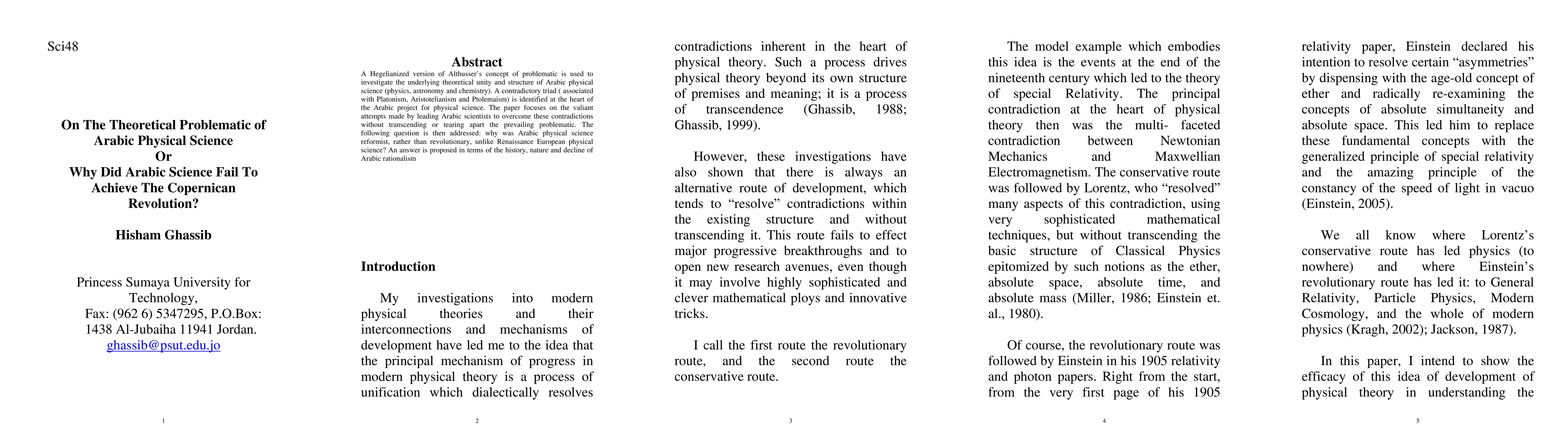 A research paper explores why Arabic physical science failed to achieve a Copernican revolution, finding it was hindered by contradictions between Platonism, Aristotelian philosophy, and Ptolemaic science, ultimately leading to a reformist approach.