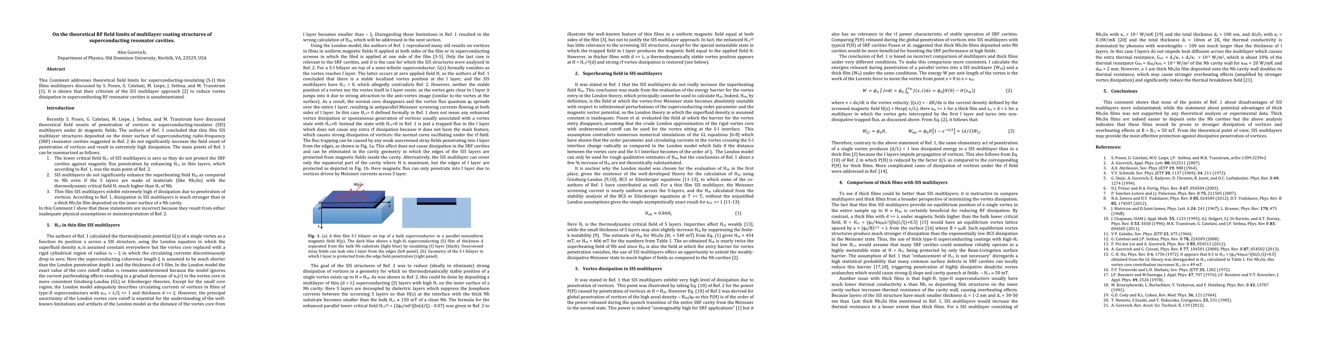This paper refutes criticism on the SIS multilayer method for reducing vortex dissipation in superconducting RF resonator cavities, affirming the theoretical field limits of multilayer coating structures.