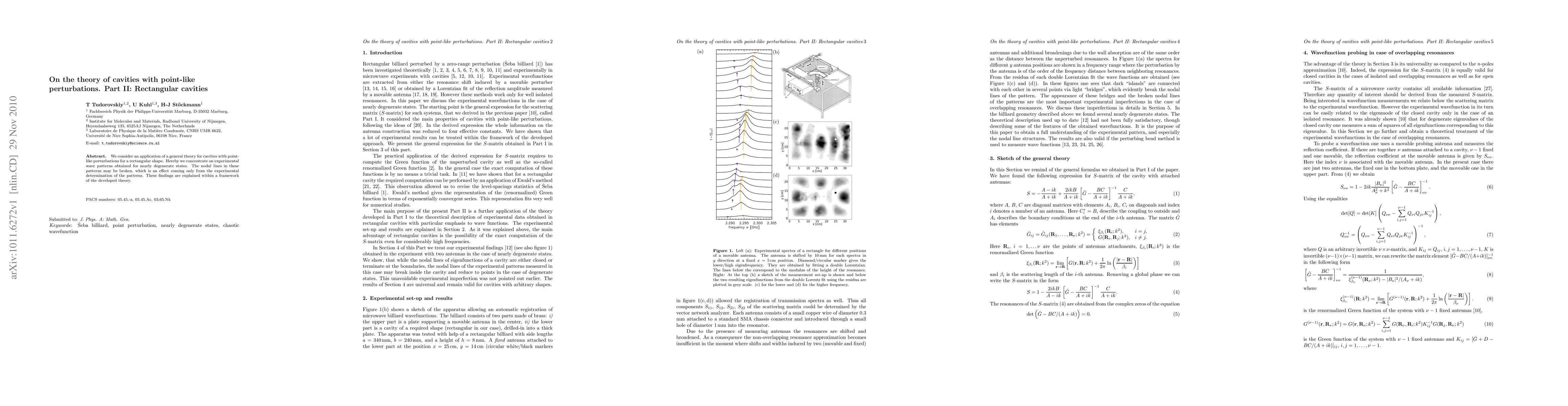 We consider an application of a general theory for cavities with point-like perturbations for a rectangular shape. Hereby we concentrate on experimental wave patterns obtained for nearly degenerate states. The nodal lines in these patterns may be broken, which is an effect coming only from the experimental determination of the patterns. These findings are explained within a framework of the developed theory.