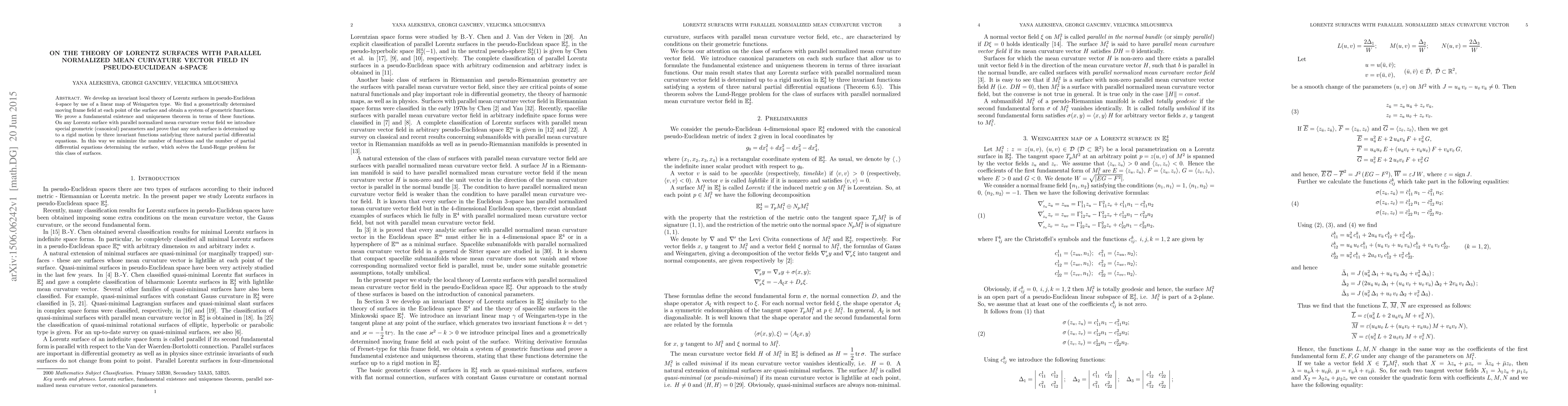 This paper develops a local theory for Lorentz surfaces in pseudo-Euclidean 4-space, establishing a unique determination of such surfaces with parallel normalized mean curvature via a minimal set of three invariant functions and associated partial differential equations. The theory utilizes a linear map and a geometrically determined moving frame field.