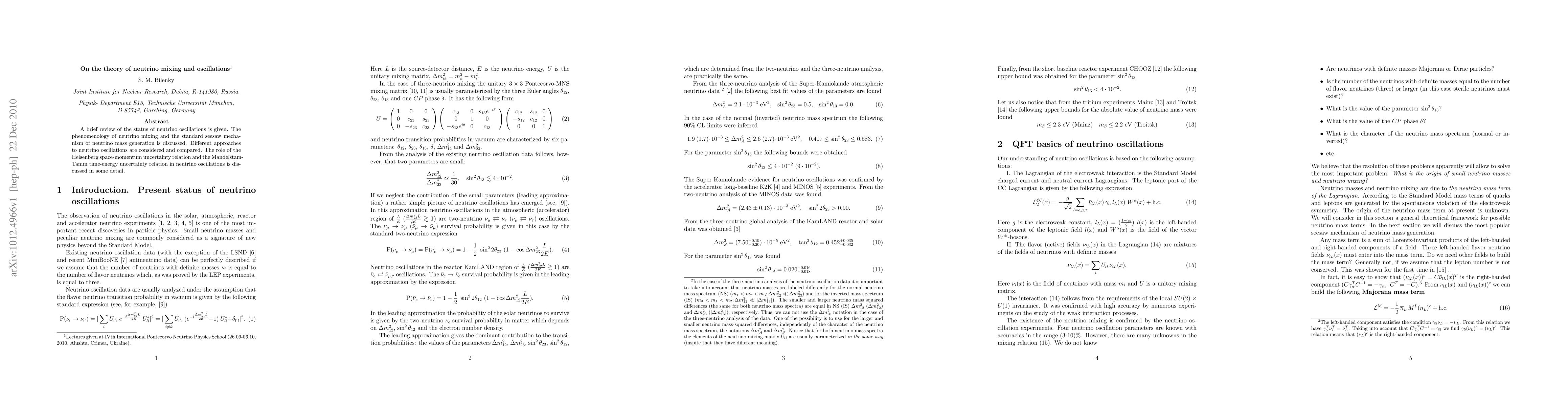 This paper reviews the current state of neutrino oscillation theory, discussing the phenomenology of neutrino mixing and the seesaw mechanism for mass generation. It compares various approaches to neutrino oscillations and explores the implications of uncertainty relations in these processes.