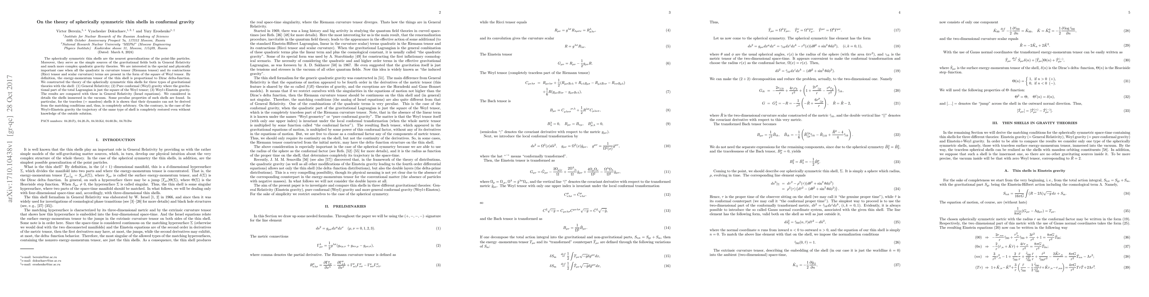 This paper explores the theory of spherically symmetric thin shells in three gravitational frameworks: General Relativity, pure conformal gravity, and Weyl+Einstein gravity. It finds that traceless shells in conformal gravity exhibit arbitrary dynamics without matching conditions, whereas Weyl+Einstein gravity can restore shell trajectories without external solution knowledge.