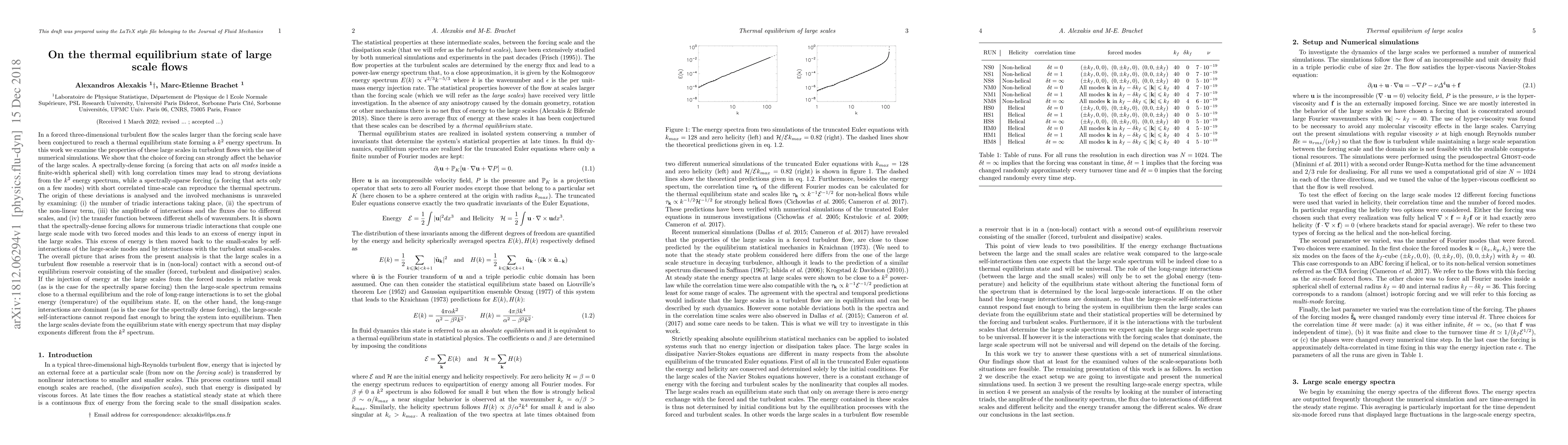 Large-scale flows in turbulent systems can deviate from thermal equilibrium depending on forcing strength, with spectrally-dense forcing leading to large-scale energy input and deviation from the k^2 spectrum.