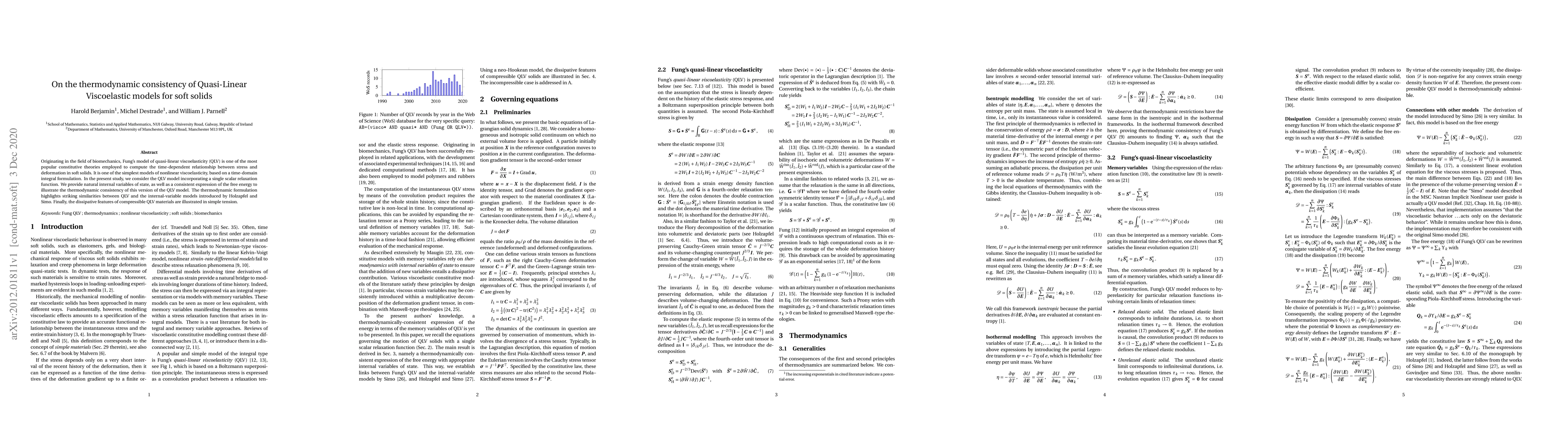 A study on Quasi-Linear Viscoelastic (QLV) models for soft solids reveals thermodynamic consistency with natural internal variables and consistent free energy expressions, shedding light on the dissipative features of compressible materials.