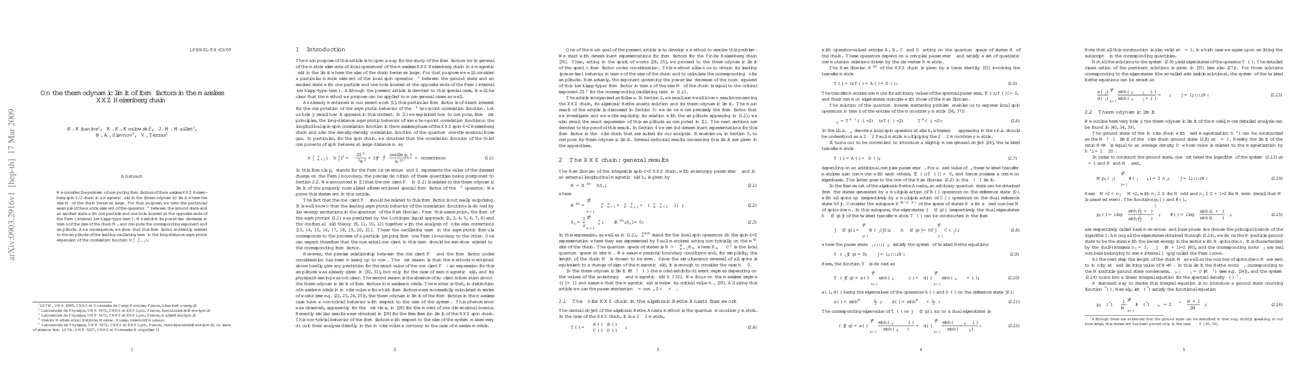 This paper investigates the thermodynamic limit of form factors in the massless XXZ Heisenberg spin-1/2 chain, focusing on a specific matrix element between ground and excited states. It reveals a power-law decay of this form factor with chain size, linking it to the amplitude of the leading oscillating term in the long-distance spin correlation function.
