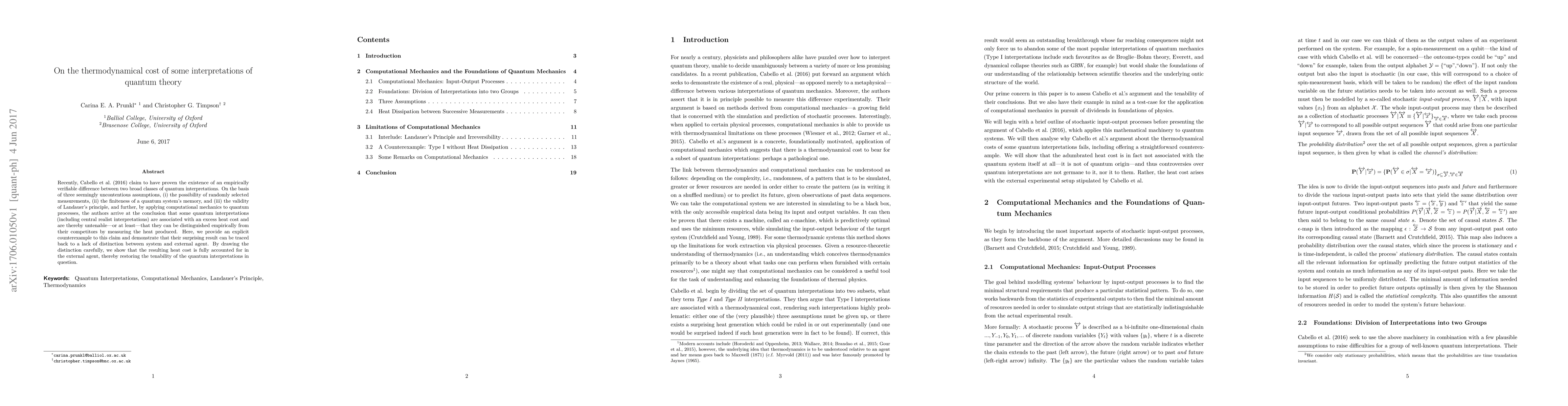 Cabello et al. claim to have proven the existence of an empirically verifiable difference between two broad classes of quantum interpretations. On the basis of three seemingly uncontentious assumptions, (i) the possibility of randomly selected measurements, (ii) the finiteness of a quantum system's memory, and (iii) the validity of Landauer's principle, and further, by applying computational mechanics to quantum processes, the authors arrive at the conclusion that some quantum interpretations (including central realist interpretations) are associated with an excess heat cost and are thereby untenable - or at least - that they can be distinguished empirically from their competitors by measuring the heat produced. Here, we provide an explicit counterexample to this claim and demonstrate that their surprising result can be traced back to a lack of distinction between system and external agent. By drawing the distinction carefully, we show that the resulting heat cost is fully accounted for in the external agent, thereby restoring the tenability of the quantum interpretations in question.