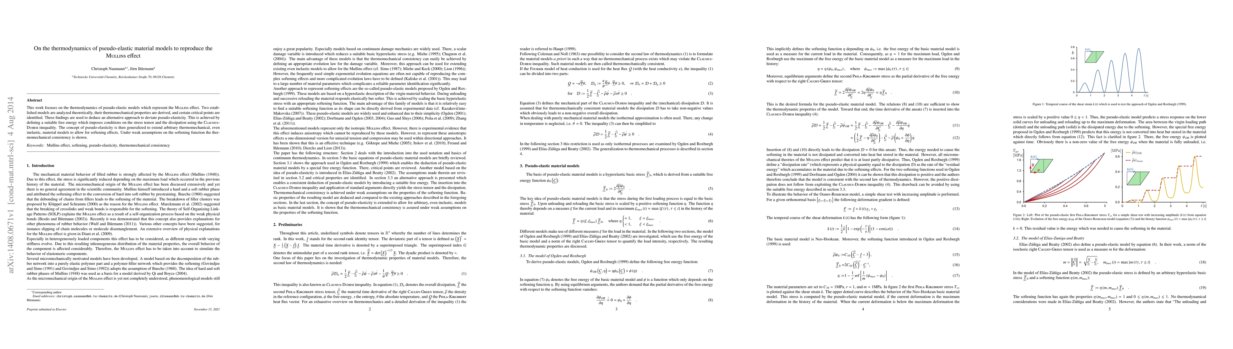 This work focuses on the thermodynamics of pseudo-elastic models which represent the Mullins effect. Two established models are analyzed theoretically, their thermomechanical properties are derived, and certain critical points are identified. These findings are used to deduce an alternative approach to deviate pseudo-elasticity. This is achieved by defining a suitable free energy which imposes conditions on the stress tensor and the dissipation using the Clausius-Duhem inequality. The concept of pseudo-elasticity is then generalized to extend arbitrary thermomechanical, even inelastic, material models to allow for softening effects. Under weak assumptions on the softening function the thermomechanical consistency is shown.