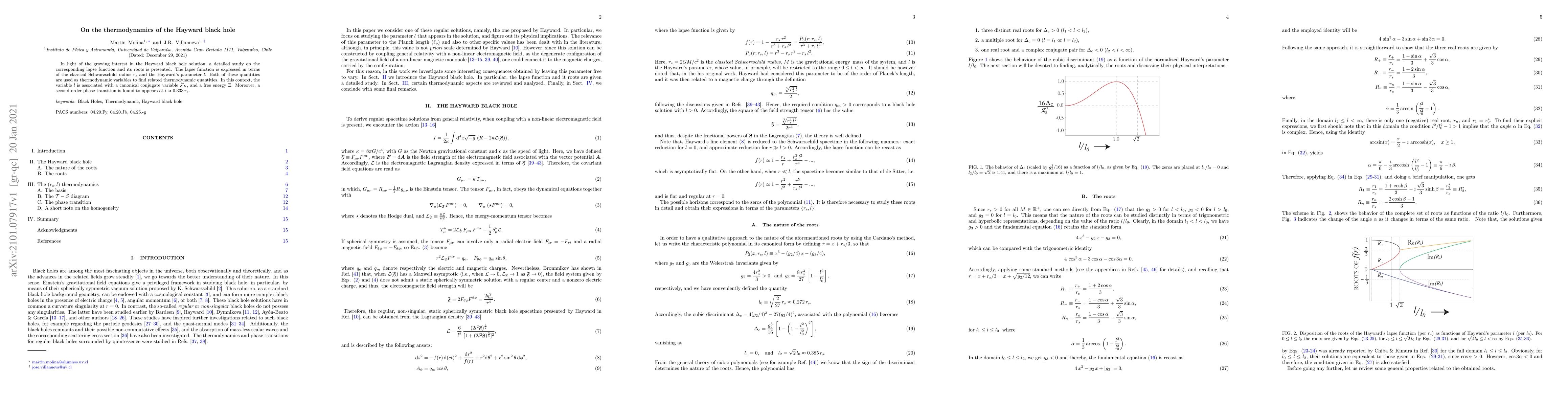 In light of the growing interest in the Hayward black hole solution, a detailed study on the corresponding lapse function and its roots is presented. The lapse function is expressed in terms of the classical Schwarzschild radius $r_s$ and the Hayward's parameter $l$. Both of these quantities are used as thermodynamic variables to find related thermodynamic quantities. In this context, the variable $l$ is associated with a canonical conjugate variable $\mathcal{F}_H$, and a free energy $\Xi$. Moreover, a second order phase transition is found to appears at $l\approx0.333\,r_s$.
